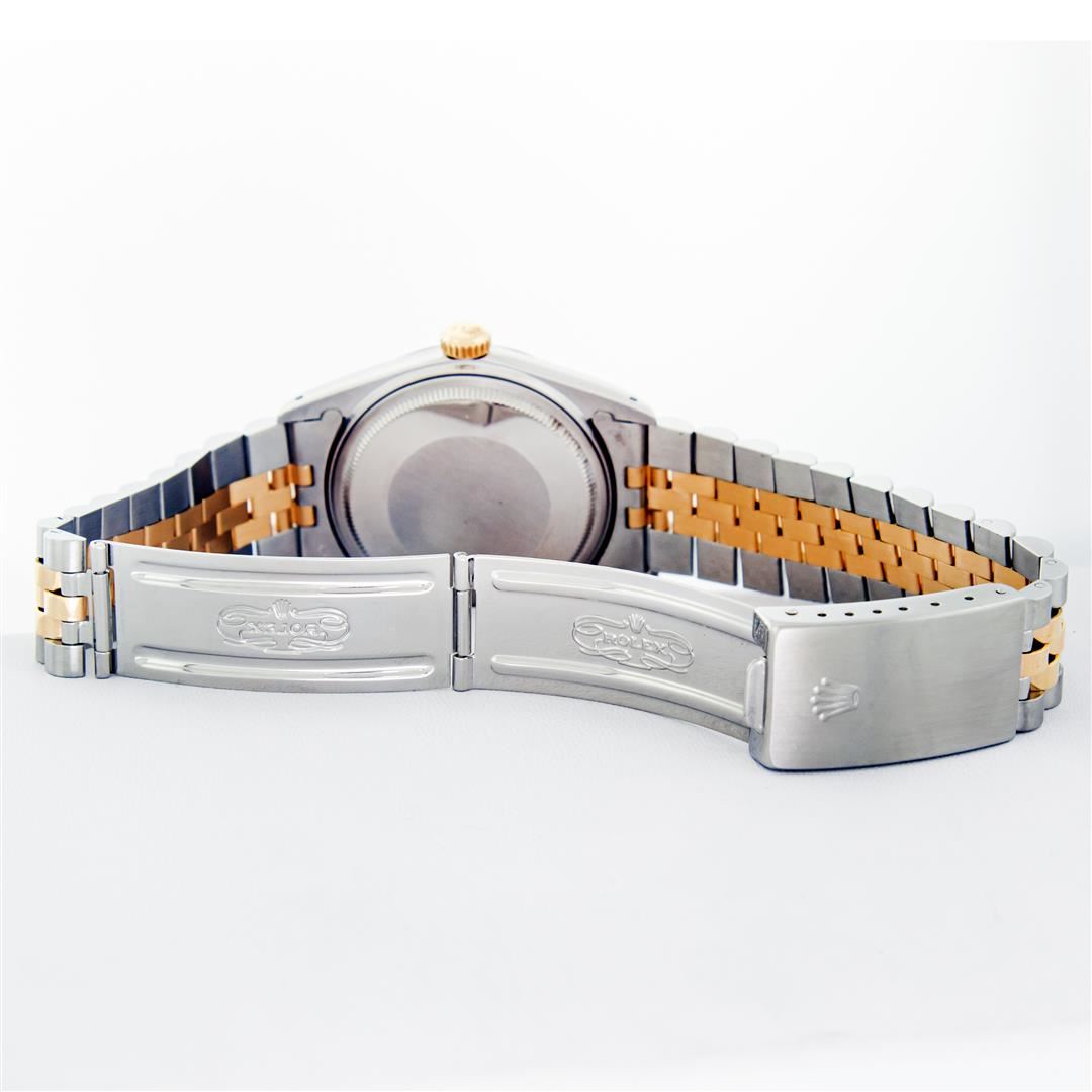 One Mens Rolex Pre Owned 14K Two Tone Yellow Gold And Stainless Steel Datejust Polished, Serviced & Electronically Tested, Yellow Gold & Stainless Steel Case: 36mm, Yellow Gold Crown, Rolex Bezel: 14K Yellow Gold Fluted Bezel. Custom Crystal: New Acrylic With Magnified Date Window. Custom Hands: New Luminescent Hands. Rolex Movement: Automatic Winding Movement 3035. Rolex Dial: Champagne Index Dial With Dash Track & Lumi Dots. Date Window: 3 O'Clock Position Date Display, Quickset, Model: Datejust. Condition: G-6 Extra Fine. Rolex Bracelet: Two Tone 14K Yellow Gold And Stainless Steel Jubilee Band. Bright Polish. 7.0 Inch Length, Adjustable. Standard Clasp, With Rolex Logo. This Watch Has Been Serviced Time Tested And Is In Excellent Condition It Is Free Of All Scratches And Dents.