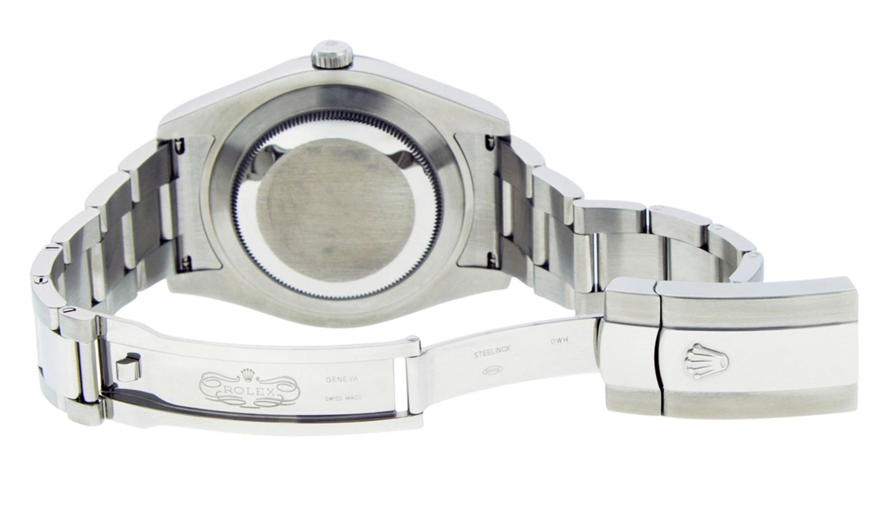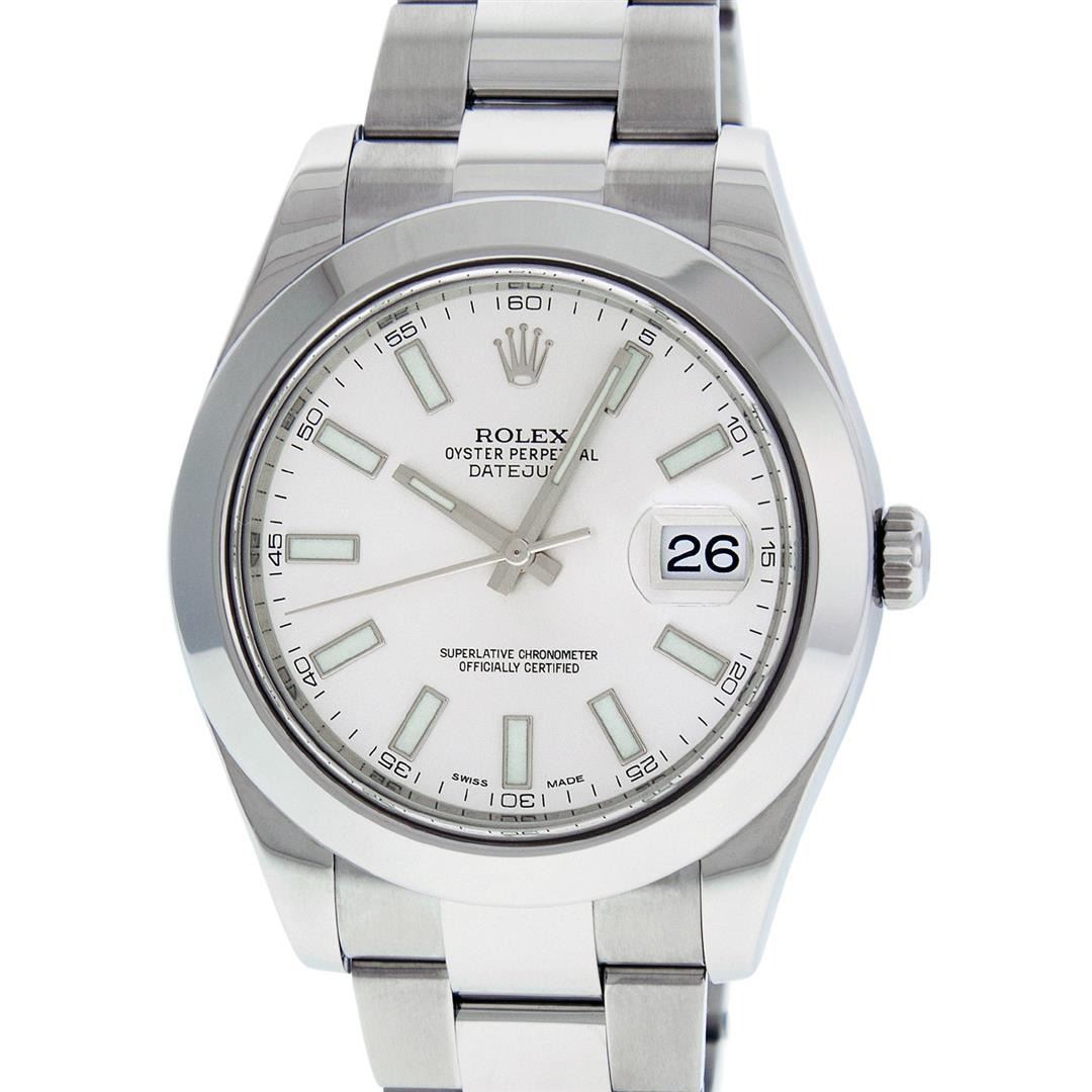 One Mens Rolex Datejust 2 41MM Polished, Serviced & Electronically Tested, Rolex Stainless Steel Case: 41mm, Stainless Steel Crown, Rolex Bezel: Stainless Steel Smooth Bezel, Crystal: Sapphire With Magnified Date Window. Hands: Luminescent Hands. Rolex Movement: Automatic Winding Movement 3136. Rolex Dial: White Index With Dash Track. Date Window: 3 O'Clock Position Date Display, Quickset, Model: Datejust 2. Condition: G-6 Extra Fine. Rolex Bracelet: Stainless Steel Oyster Band. Bright Polish & Satin Finish. 7.0 Inch Length, Adjustable. Standard Clasp, With Rolex Logo. This Pre Owned Watch Has Been Serviced Time Tested And Is In Excellent Condition It Is Free Of All Scratches And Dents.
