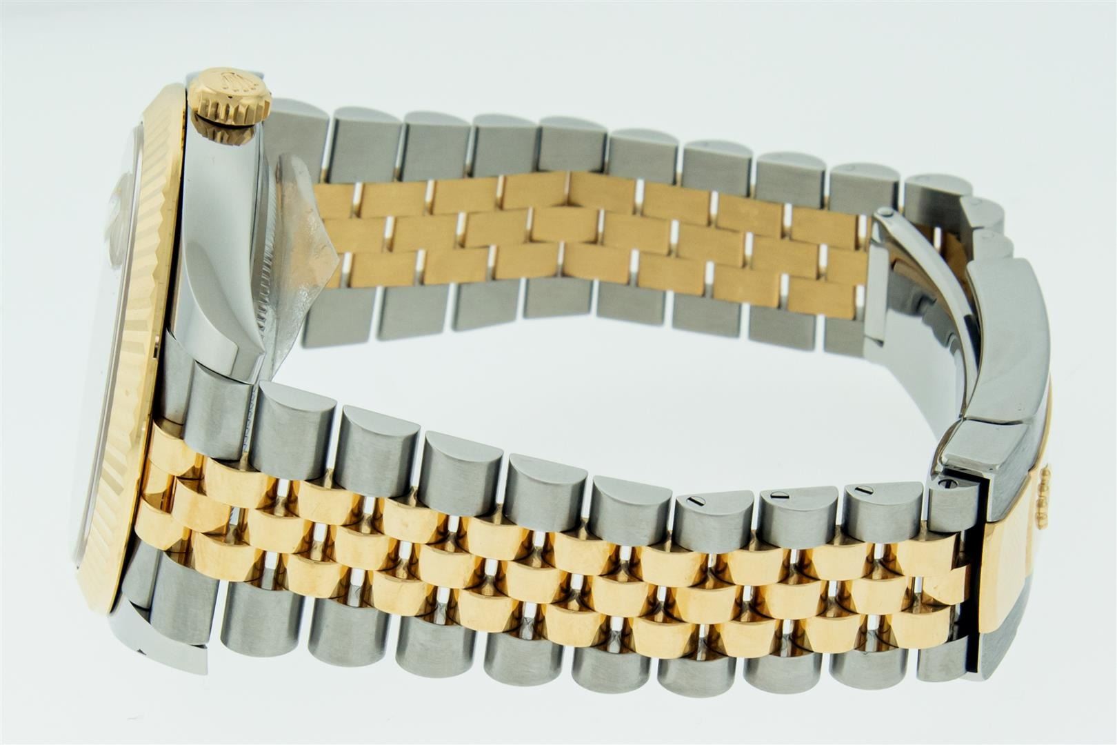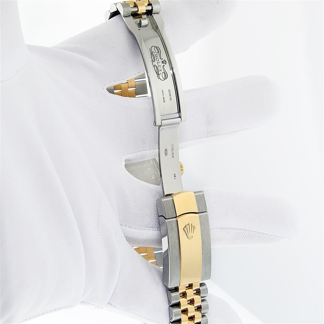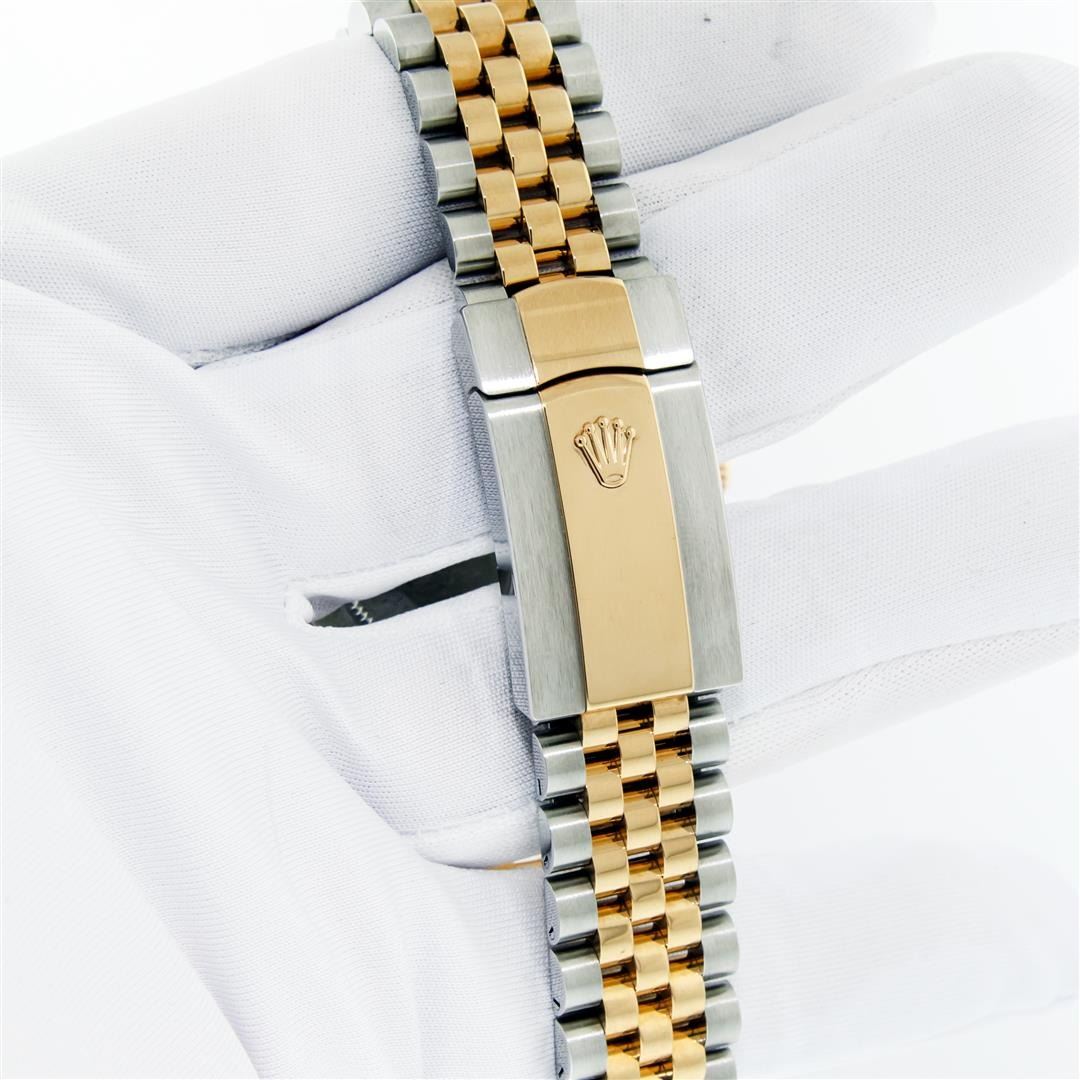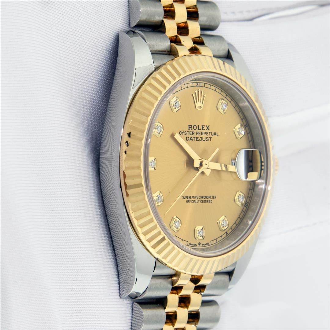 One Mens Pre Owned 18K Yellow Gold & Stainless Steel Rolex Datejust 41MM Polished, Serviced & Electronically Tested, Rolex Yellow Gold & Stainless Steel Case: 41mm, Rolex Yellow Gold Crown, Rolex Bezel: 18K Yellow Gold Fluted Bezel. Crystal: Sapphire With Magnified Date Window. Rolex Hands: Solid Hands. Rolex Movement: Automatic Winding Movement 3235. Rolex Dial: Factory Champagne Diamond Dial With Square Roman Track, Diamond Count: 10 Diamonds On Dial, Clarity: VVS. Date Window: 3 O'Clock Position Date Display, Quickset, Model: Datejust 41. Condition: G-6 Extra Fine. Rolex Bracelet: Two Tone 18K Yellow Gold & Stainless Steel Jubilee Band. Bright Polish. 7.0 Inch Length, Adjustable. Standard Clasp, With Rolex Logo. This Watch Has Been Serviced And Polished It Is Free Of All Scratches And Dents. This Watch Comes With Rolex Box & Card.