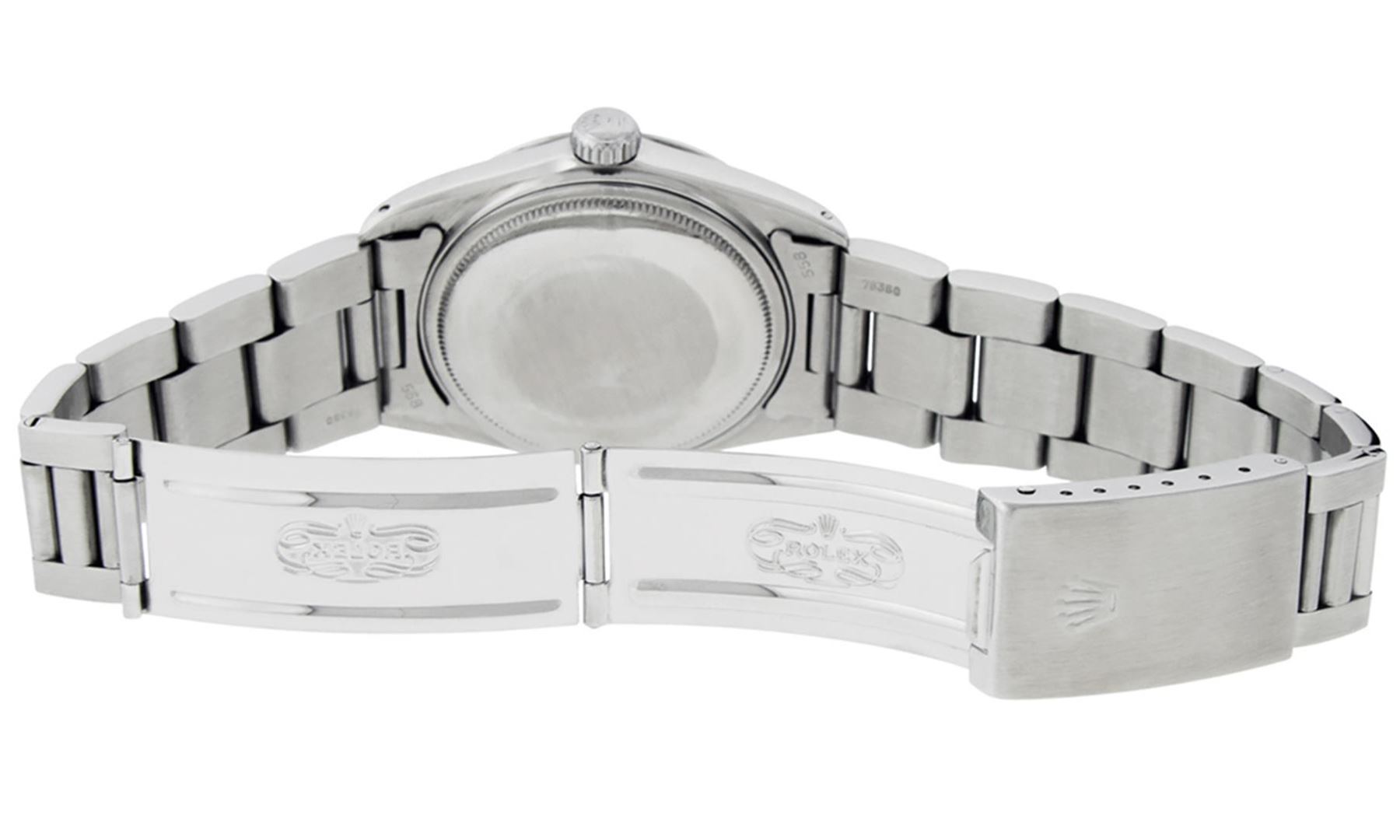 One Mens Rolex Quickset Stainless Steel Datejust Polished Bright with Satin Finish, Serviced & Electronically Tested, Rolex Stainless Steel Case: 36mm, Rolex Stainless Steel Crown, Rolex Bezel: Stainless Steel Smooth Bezel. Crystal: Sapphire With Magnified Date Window. Custom Hands: New Luminescent Hands. Rolex Movement: Automatic Winding Movement Caliber 3135. Rolex Dial: Silver Dial With Index Hour Markers Dash Track And Lumi Dots. Date Window: 3 O'Clock Position Date Display, Quickset, Model: Quickset Datejust. Condition: G-6 Extra Fine. Rolex Bracelet: Stainless Steel Oyster Band. Bright Polish & Satin Finish. 7.0 Inch Length, Adjustable. Standard Clasp, With Rolex Logo. This Pre Owned Watch Has Been Serviced Time Tested And Is In Excellent Condition It Is Free Of All Scratches And Dents.