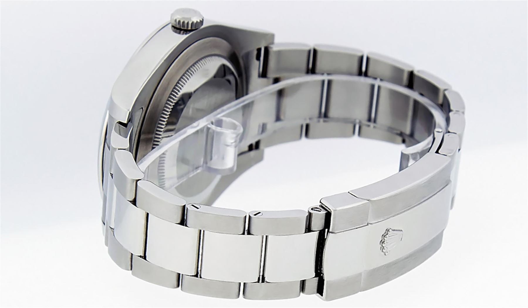One Mens Pre Owned Rolex Datejust 2 Polished With Shiny Finish, Serviced & Electronically Tested, Stainless Steel Case: 41mm, Stainless Steel Crown, Bezel: Stainless Steel Smooth Bezel, Crystal: Scratch Resistant Synthetic Sapphire Cyclops Lens. Rolex Movement: Automatic Winding Movement. Custom Dial: Red With Custom Added Roman Diamond Hour Markers. Date Window: 3 O'Clock Position Date Display, Quickset, Model: Datejust 2. Condition: G-6 Extra Fine The Watch Is In Very Good Condition Free Of All Scratches And Dents. Rolex Bracelet: Stainless Steel Oyster Band. Bright Polish & Satin Finish. 7.5 Inch Length, Adjustable. Standard Clasp, With Rolex Logo. This Watch Has Been Serviced Time Tested And Is In Excellent Condition It Is Free Of All Scratches And Dents.