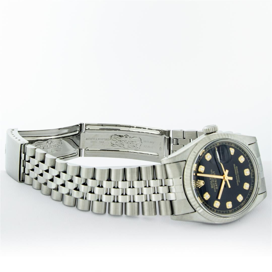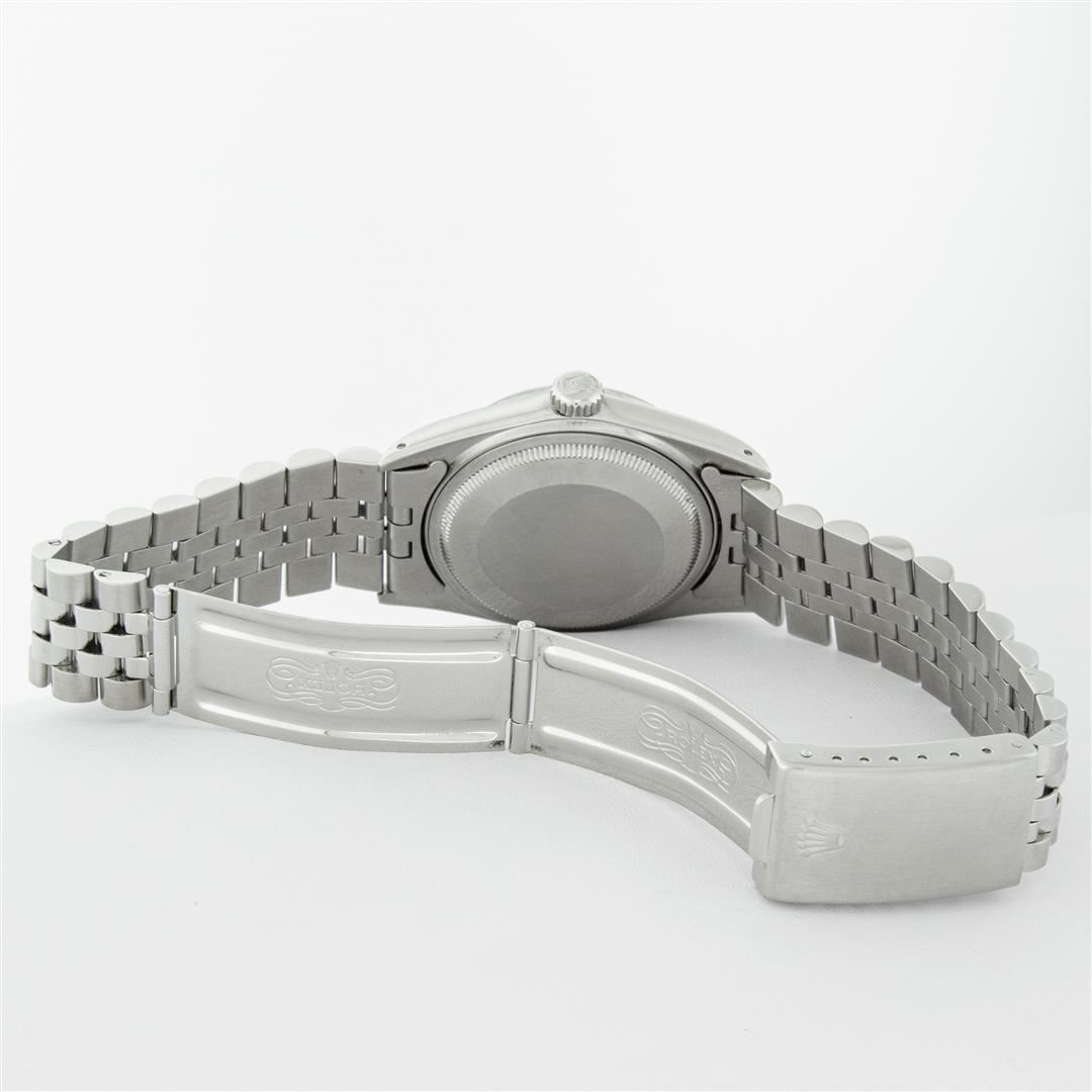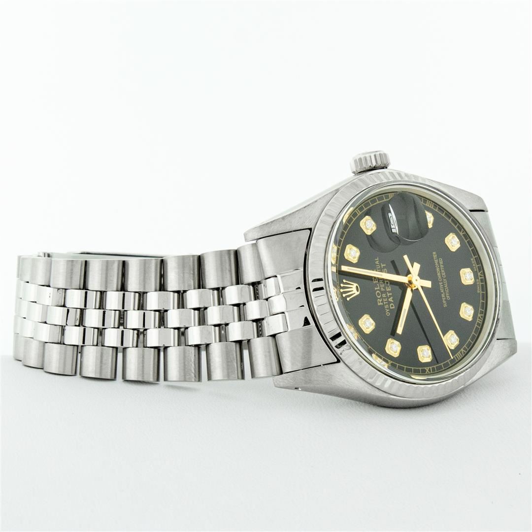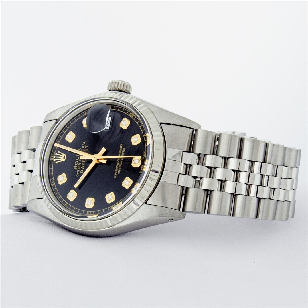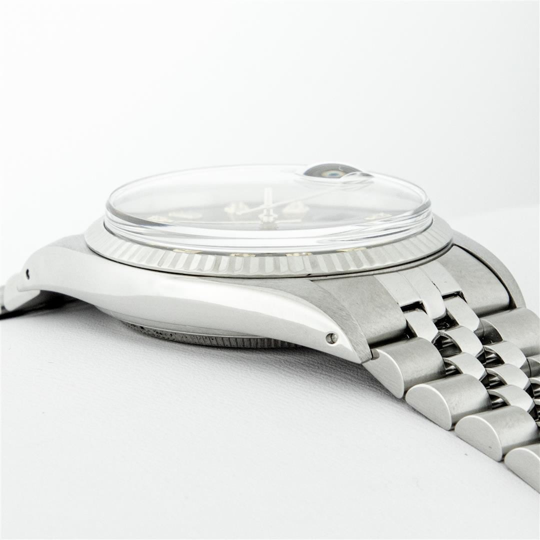 One Mens Pre Owned Stainless Steel Rolex Datejust Polished, Serviced & Electronically Tested, Rolex Stainless Steel Case: 36mm, Rolex Stainless Steel Crown, Rolex Bezel: 14K White Gold Fluted Bezel. Custom Crystal: New Acrylic With Date Window. Custom Han