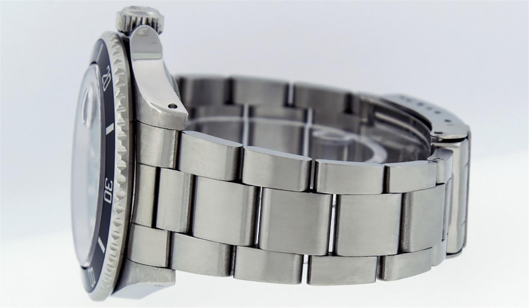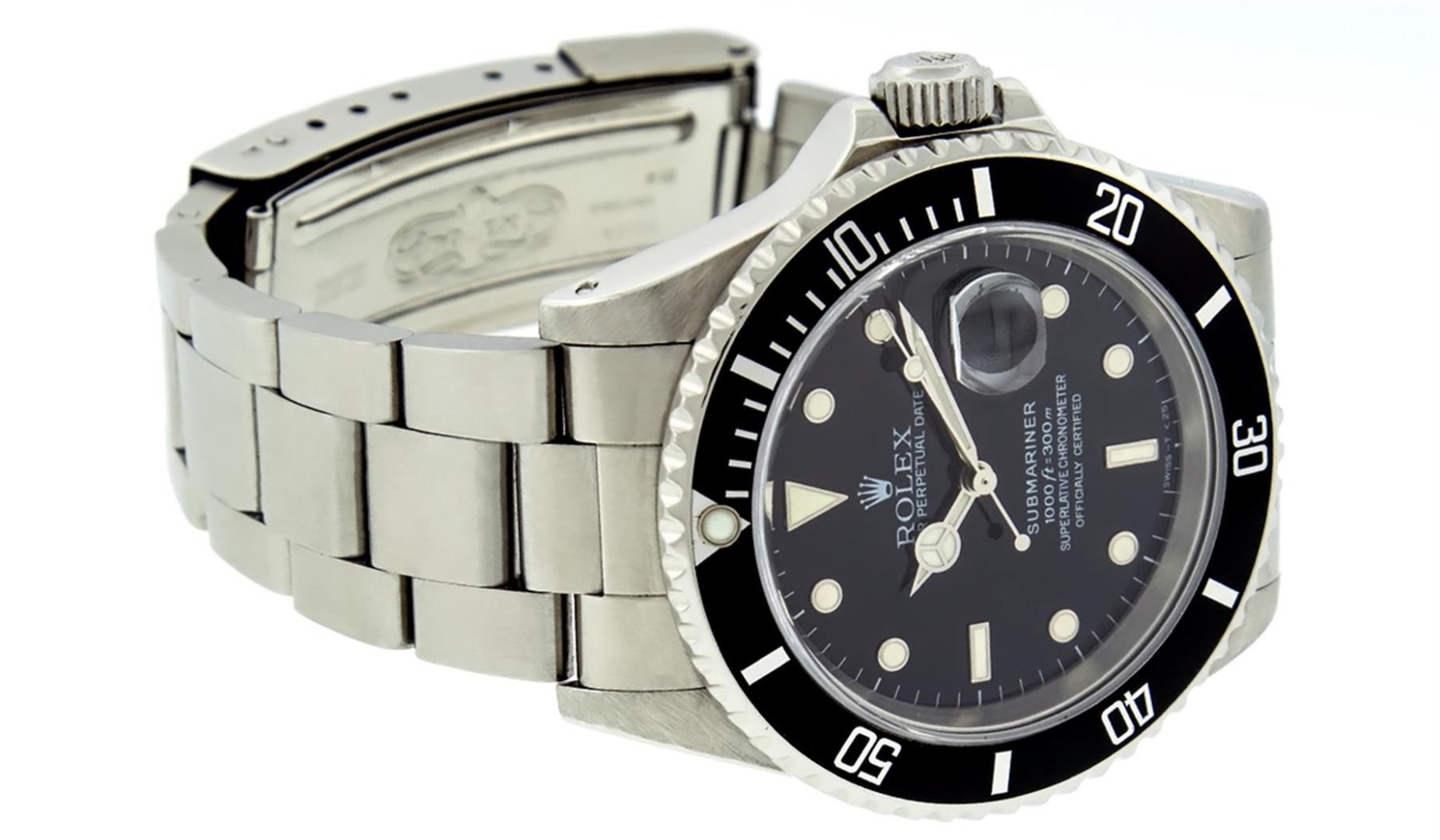 One Mens Pre Owned Rolex Submariner With Date Polished, Serviced & Electronically Tested, Rolex Stainless Steel Case: 40mm, Rolex Stainless Steel Crown, Rolex Bezel: Stainless Steel Rotatable Bezel With Black Insert. Crystal: Sapphire With Cyclops Lens. Rolex Movement: Automatic Winding Movement Caliber 3135. Rolex Dial: Black Submariner Dial, Hands: Submariner Hands. Date Window: 3 O'Clock Position Date Display, Model: Submariner, Quickset, Condition: G-6 Extra Fine. Rolex Bracelet: Stainless Steel Oyster Band. Bright Polish & Satin Finish. 7.0 Inch Length, Adjustable. Standard Clasp, With Rolex Logo.