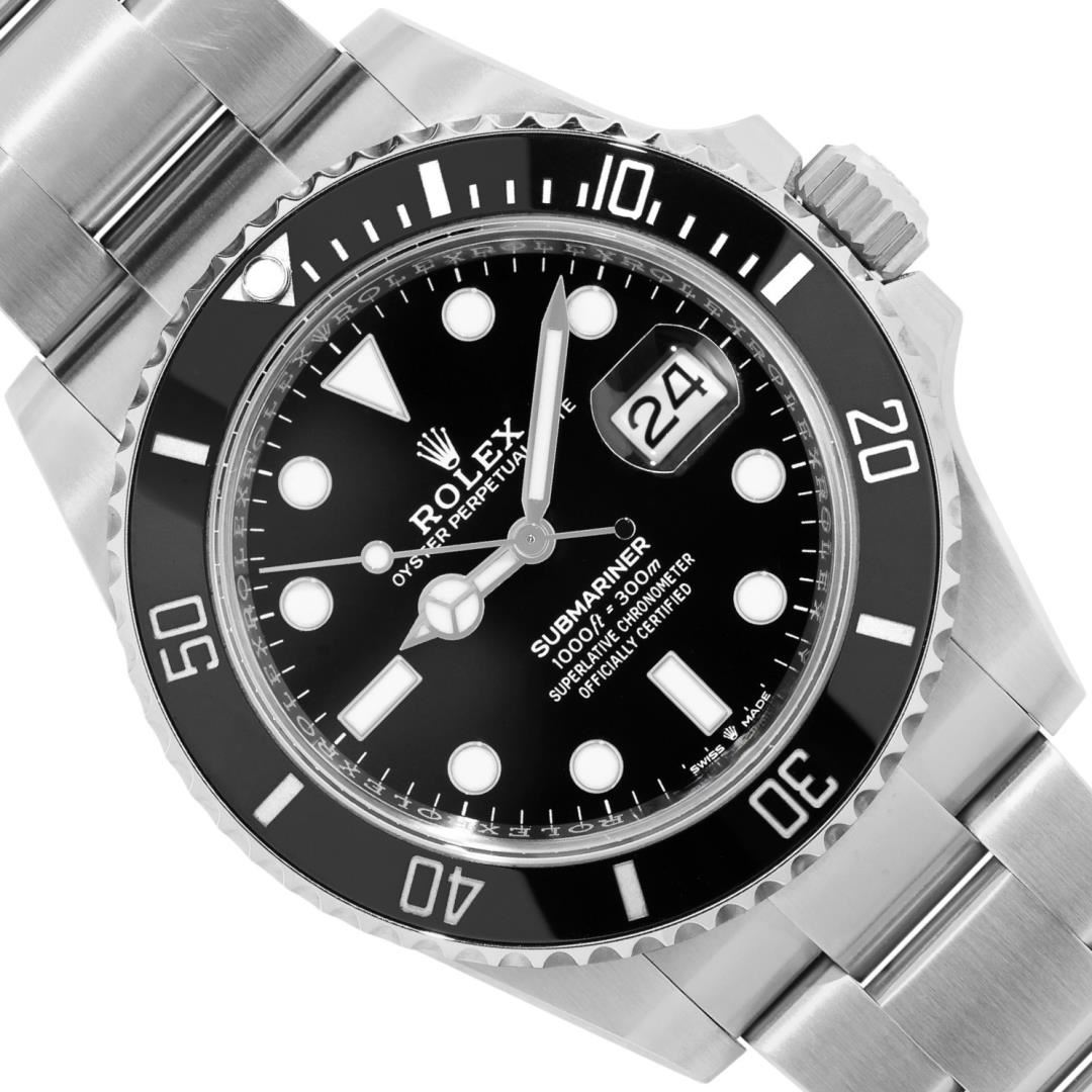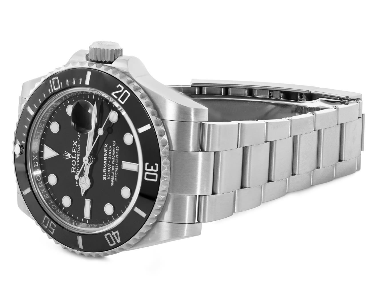 One Mens Pre Owned Ceramic Rolex Submariner With Date Polished, Serviced And Electronically Tested, Rolex Stainless Steel Case: 41mm, Rolex Stainless Steel Crown, Rolex Bezel: Stainless Steel Rotatable Bezel With Black Ceramic Insert. Rolex Crystal: Sapphire With Magnified Date Window. Rolex Movement: Automatic Winding Movement Caliber 3235. Rolex Dial: Rolex Black Submariner Dial with Luminous Index Hour Markers. Date Window: 3 O'Clock Position Date Display, Model: 41MM Ceramic Submariner, Quickset, Condition: G-6 Extra Fine. Rolex Bracelet: Stainless Steel Oyster Band. Bright Polish & Satin Finish. 7.0 Inch Length, Adjustable. Standard Clasp, With Rolex Logo. This Watch Has Been Serviced And Polished It Is Free Of All Scratches And Dents. This Watch Comes With A Rolex Box And Card.