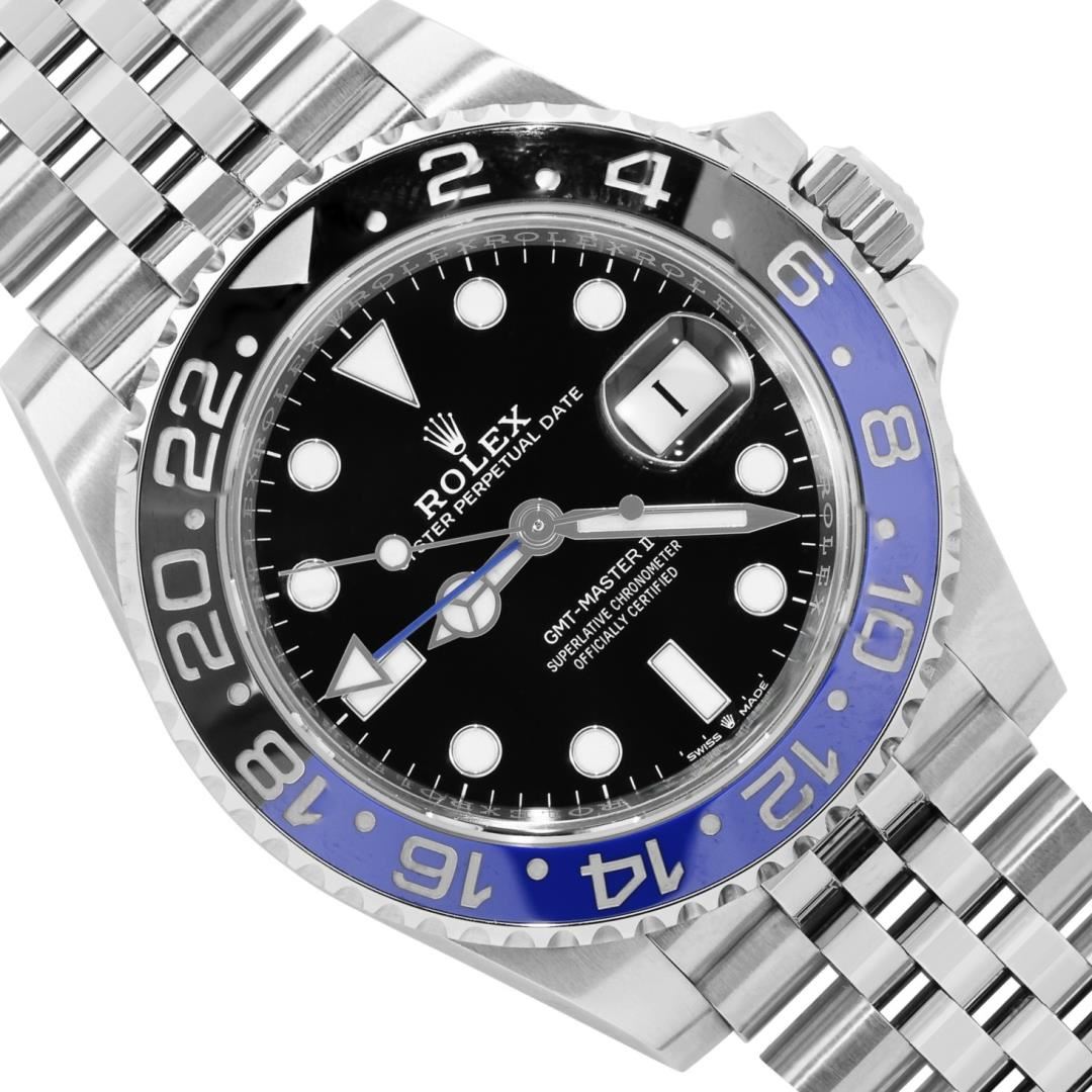 One Mens Pre Owned Rolex Stainless Steel GMT Master 2 Polished, Serviced And Electronically Tested, Rolex Stainless Steel Case: 40mm, Rolex Stainless Steel Crown, Rolex Bezel: Stainless Steel Bi Directional Rotatable Bezel With Blue And Black Insert. Rolex Crystal: Sapphire Crystal With Magnified Date Window. Rolex Movement: Automatic Winding Movement Caliber 3285. Dial: Black Dial. Functions: Quickset, GMT Hand. Date Window: 3 O'Clock Position Date Display, Model: GMT Master 2, Quickset, Condition: G-6 Extra Fine. Rolex Bracelet: Stainless Steel Jubilee Band. Bright Polish And Satin Finish. 7.25 Inch Length, Adjustable. Standard Clasp, With Rolex Logo. This Watch Has Been Serviced Time Tested And Is In Excellent Condition It Is Free Of All Scratches And Dents. This Watch Comes With A Rolex Box And Card.