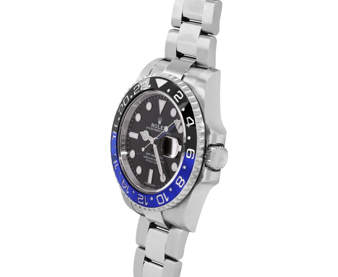 One Mens Pre Owned Rolex Stainless Steel GMT Master 2 Polished, Serviced And Electronically Tested, Rolex Stainless Steel Case: 40mm, Rolex Stainless Steel Crown, Rolex Bezel: Stainless Steel Bi Directional Rotatable Bezel With Blue And Black Insert. Rolex Crystal: Sapphire Crystal With Magnified Date Window. Rolex Movement: Automatic Winding Movement Caliber 3186. Dial: Black Dial. Functions: GMT Hand, Quickset. Date Window: 3 O'Clock Position Date Display, Model: GMT Master 2, Quickset, Condition: G-6 Extra Fine. Rolex Bracelet: Stainless Steel Oyster Band. Bright Polish And Satin Finish. 7.25 Inch Length, Adjustable. Standard Clasp, With Rolex Logo. This Watch Has Been Serviced Time Tested And Is In Excellent Condition It Is Free Of All Scratches And Dents. This Watch Comes With A Rolex Box And Card.