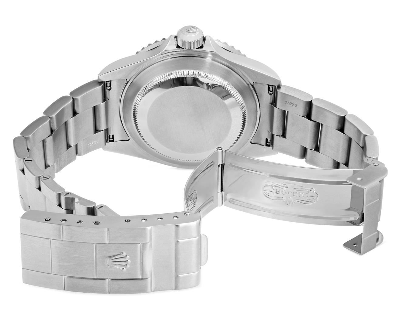 One Mens Pre Owned Rolex Stainless Steel Submariner With Date Polished, Serviced & Electronically Tested, Rolex Stainless Steel Case: 40mm, Rolex Stainless Steel Crown, Rolex Bezel: Stainless Steel Rotatable Bezel. Custom Bezel Insert: New Custom Green Ceramic Insert. Crystal: Sapphire With Magnified Date Window. Rolex Movement: Automatic Winding Movement Caliber 3135. Rolex Dial: Black Submariner Dial with Luminous Index Hour Markers And Dash Track. Date Window: 3 O'Clock Position Date Display, Model: Date No Holes Submariner, Quickset, Condition: G-6 Extra Fine. Rolex Bracelet: Stainless Steel Oyster Band. Bright Polish & Satin Finish. 7.0 Inch Length, Adjustable. Fold Clasp, With Rolex Logo. This Watch Comes With A Rolex Box.