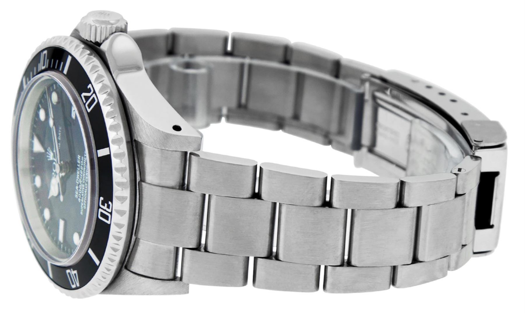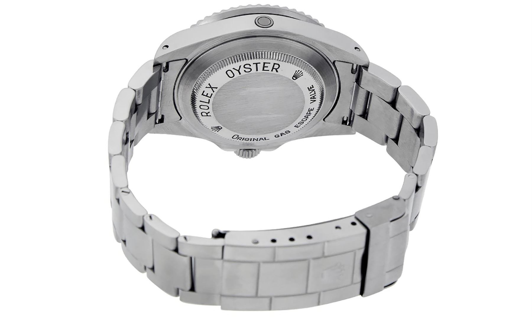 One Mens Pre Owned Rolex Stainless Steel Sea Dweller Polished, Serviced & Electronically Tested, Rolex Stainless Steel Case: 40mm, Rolex Stainless Steel Crown, Rolex Bezel: Stainless Steel Rotatable Bezel With Black Insert. Rolex Crystal: Sapphire Crystal With Magnified Date Window. Rolex Movement: Automatic Winding Movement Caliber 3135. Dial: Rolex Sea-Dweller Black Dial, Date Window: 3 O'Clock Position Date Display, Model: Sea-Dweller, Quickset, Condition: G-6 Extra Fine. Rolex Bracelet: Stainless Steel Oyster Band. Bright Polish & Satin Finish. 7.0 Inch Length, Adjustable. Standard Clasp, With Rolex Logo.