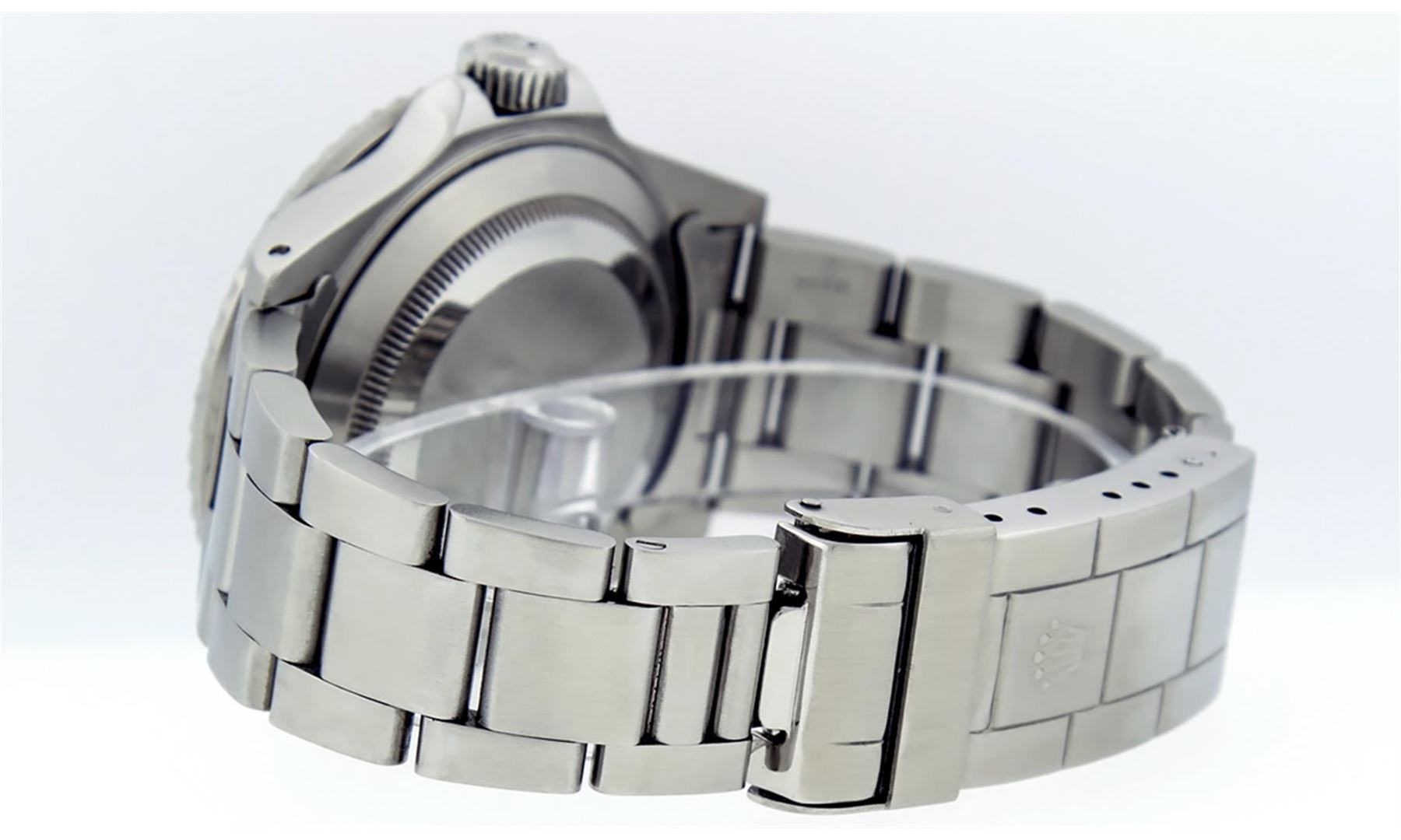 One Mens Pre Owned Rolex Submariner With Date Polished, Serviced & Electronically Tested, Rolex Stainless Steel Case:40mm, Stainless Steel Crown, Rolex Bezel: Stainless Steel Rotatable Bezel With Black Insert. Crystal: Synthetic Sapphire Cyclops Lens. Rolex Movement: Automatic Winding Movement Caliber 3135. Rolex Dial: Black Submariner Dial, Hands: Submariner Hands. Date Window: 3 O'Clock Position Date Display, Model: Submariner, Quickset, Condition: G-6 Extra Fine. Rolex Bracelet: Stainless Steel Oyster Band. Bright Polish & Satin Finish. 7.0 Inch Length, Adjustable. Standard Clasp, With Rolex Logo.