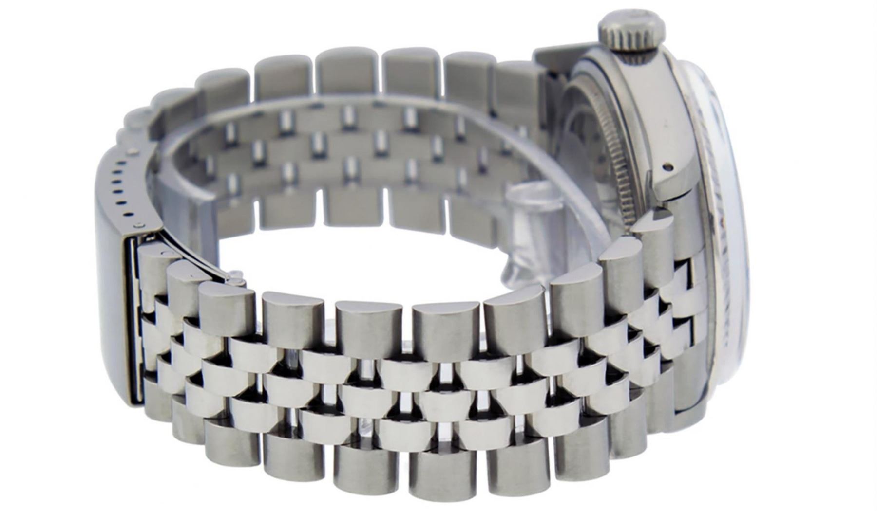 One Mens Stainless Steel Rolex Datejust Polished Bright with Satin Finish, Serviced & Electronically Tested, Stainless Steel Case: 36mm, Stainless Steel Crown, Bezel: 14K White Gold Fluted Bezel. Custom Crystal: New Acrylic Cyclops Lens. Custom Hands: New Hands. Movement: Automatic Winding Movement. Custom Dial: Black Roman. Date Window: 3 O'Clock Position Date Display, Quickset, Model: Datejust, Condition: G-6 Extra Fine. Bracelet:Stainless Steel Jubilee. Bright Polish & Satin Finish. 7.0 Inch Length, Adjustable. Standard Clasp, With Rolex Logo. Watch Has Been Serviced And Polished It Is Free Of All Scratches And Dents.