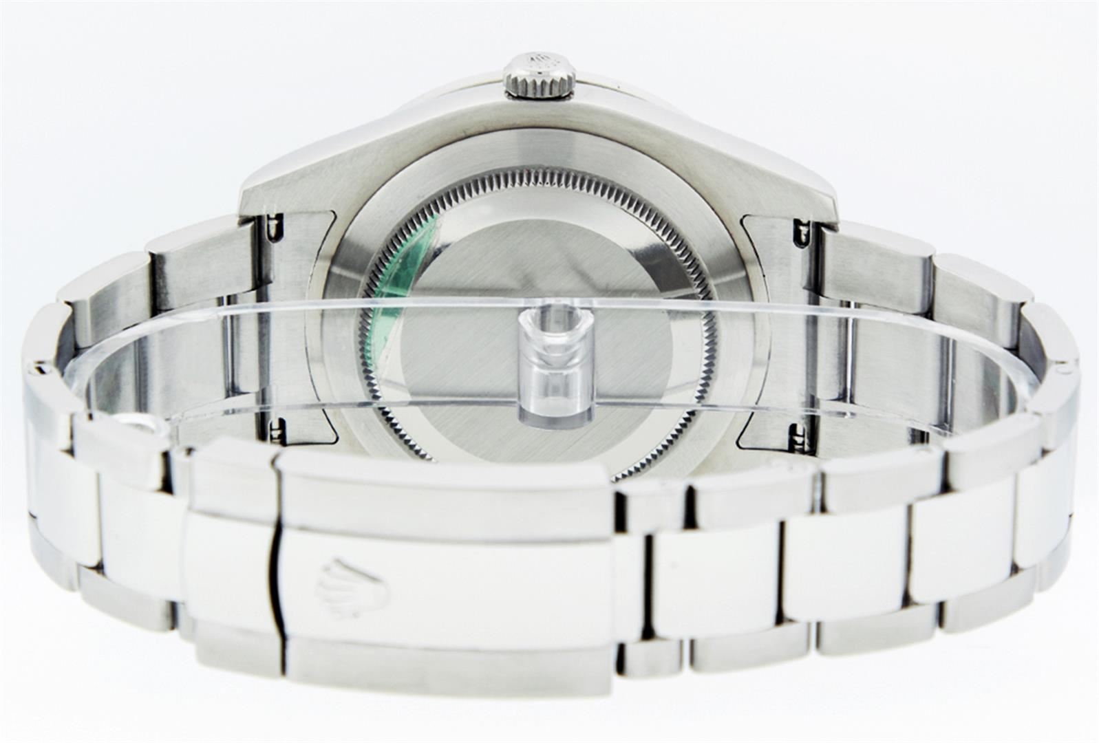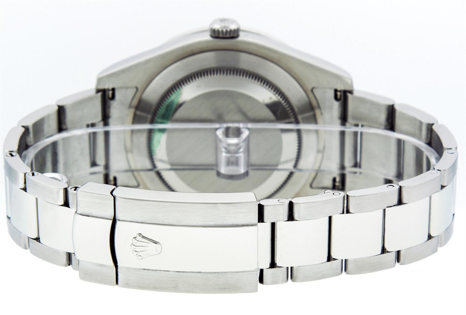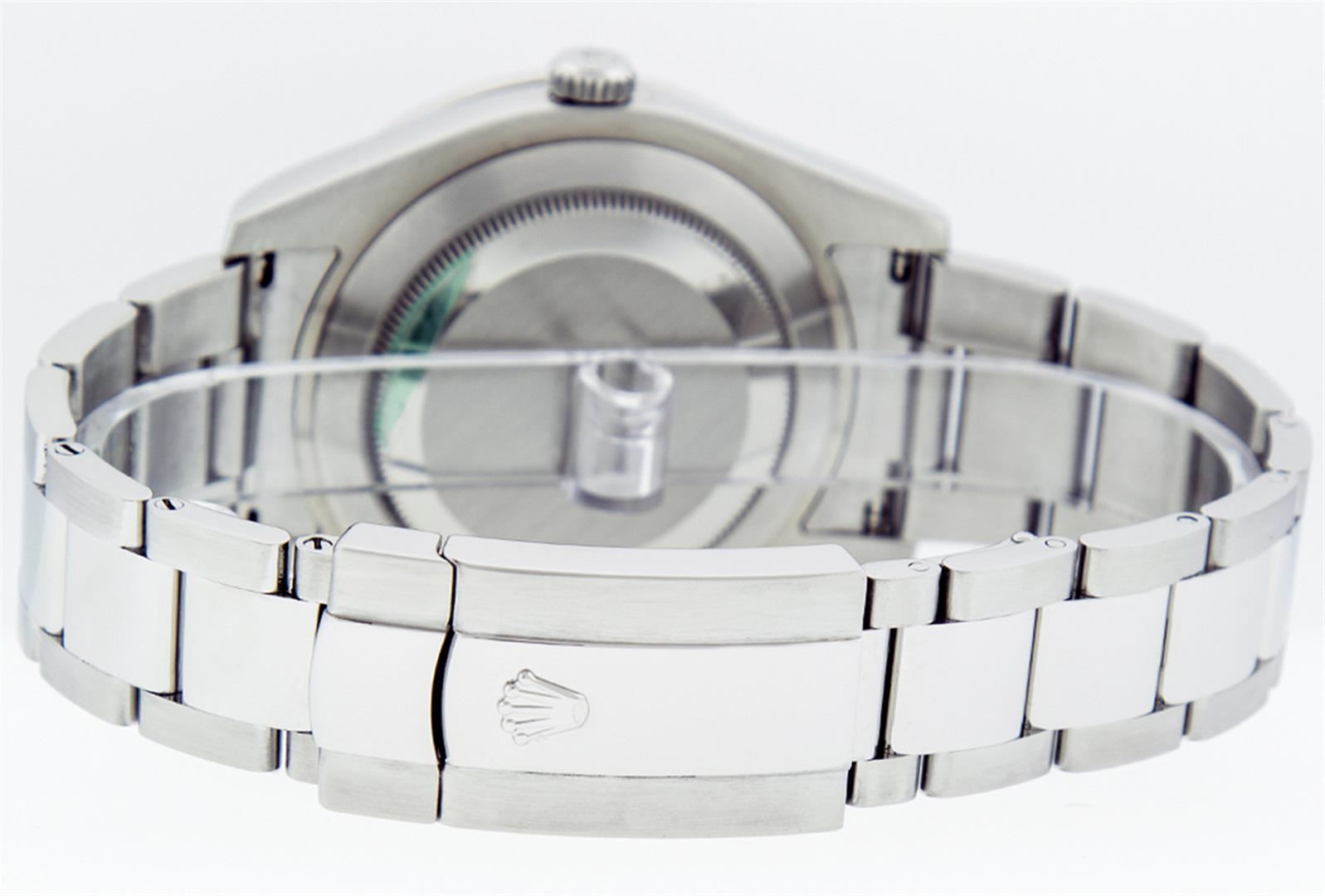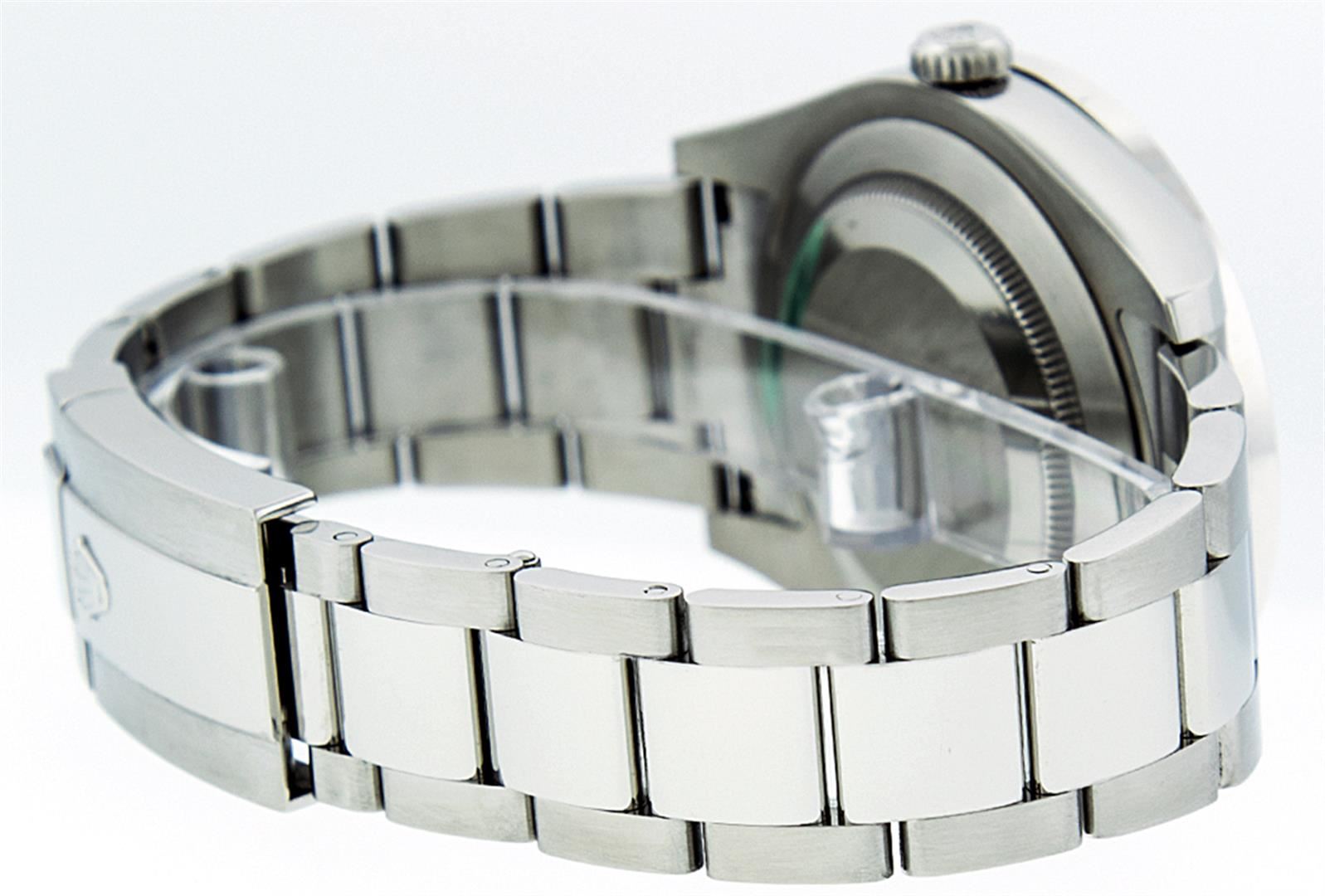 One Mens Pre Owned Rolex Datejust 2 Polished Bright with Shiny Finish, Serviced & Electronically Tested, Stainless Steel Case: 41mm, Stainless Steel Crown, Custom Bezel: New Stainless Steel Beadset Diamond Bezel, Diamond Count: 42 Diamonds On Bezel. Crystal: Sapphire With Magnified Date Window. Rolex Movement: Automatic Winding Movement. Custom Dial: Blue With Custom Added Diamond Roman Hour Markers. Date Window: 3 O'Clock Position Date Display, Quickset, Model: Datejust 2. Condition: G-6 Extra Fine. Rolex Bracelet: Stainless Steel Oyster Band. Bright Polish & Satin Finish. 7.5 Inch Length, Adjustable. Standard Clasp, With Rolex Logo. This Watch Has Been Serviced Time Tested And Is In Excellent Condition It Is Free Of All Scratches And Dents.