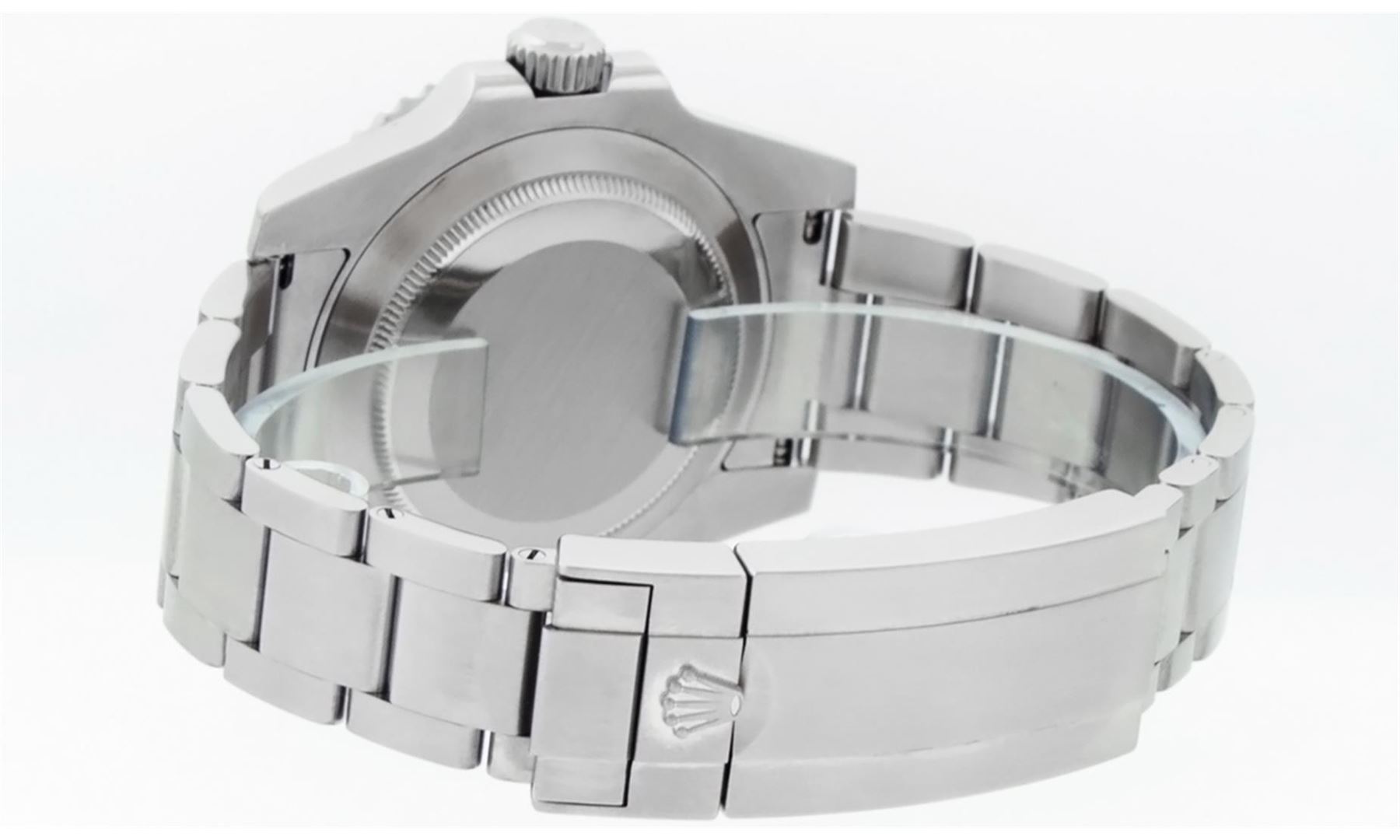 One Mens Pre Owned Rolex Submariner With Date Polished, Serviced & Electronically Tested, Stainless Steel Case: 40mm, Stainless Steel Crown, Custom Bezel: Stainless Steel With Rotatable Bezel With Green Ceramic Insert. Crystal: Sapphire With Magnified Date Window. Rolex Movement: Automatic Winding Movement Caliber 3135. Rolex Dial: Green Rolex Submariner Dial. Date Window: 3 O'Clock Position Date Display, Model: Submariner 116610LV, Quickset, Condition: G-6 Extra Fine. Rolex Bracelet: Stainless Steel Oyster. Bright Polish & Satin Finish. 7.0 Inch Length, Adjustable. Standard Clasp, With Rolex Logo.