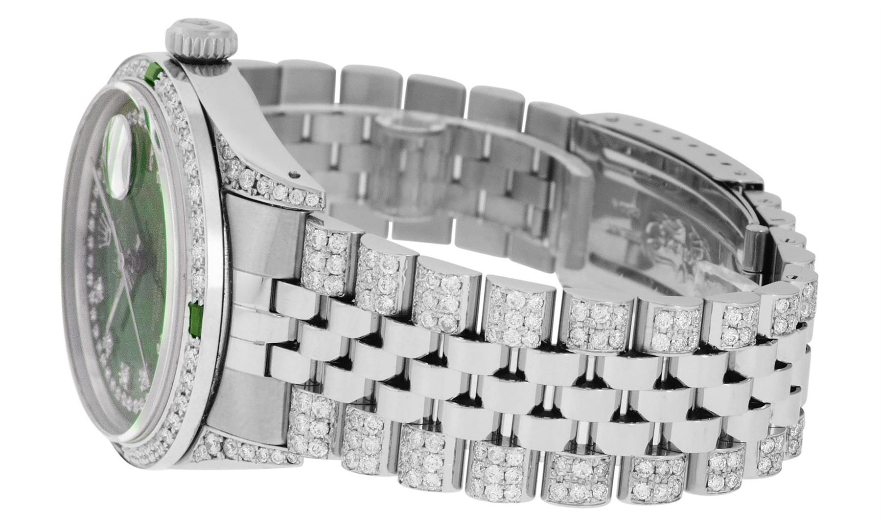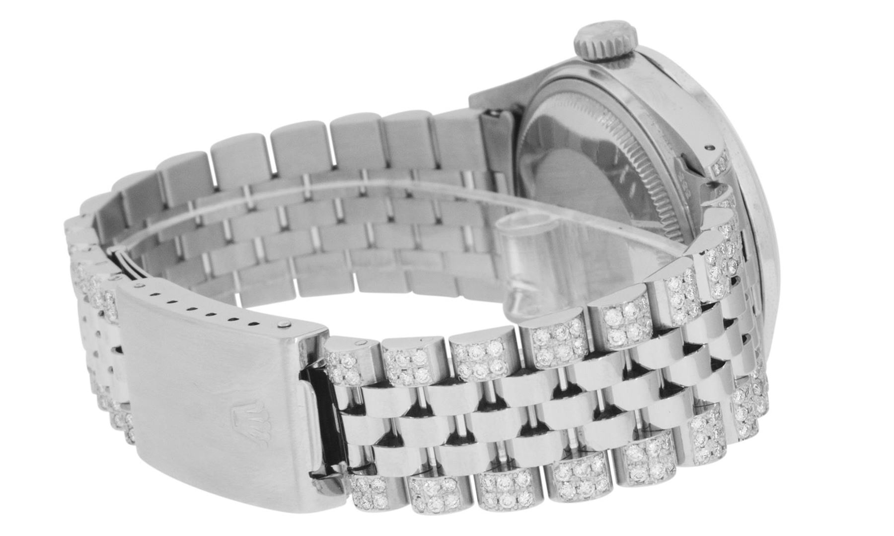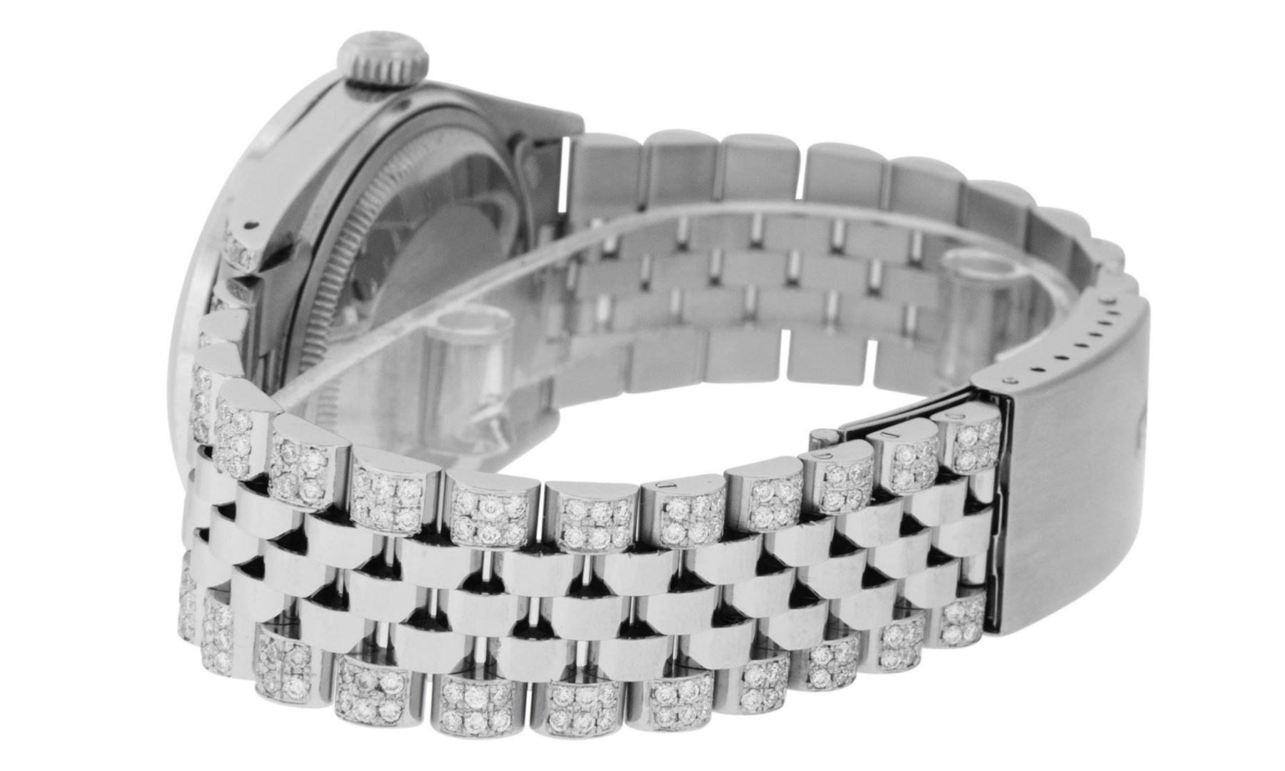 One Mens Pre Owned Rolex Datejust Polished Bright with Satin Finish, Serviced & Electronically Tested, Rolex Stainless Steel Case: 36mm, Custom Diamond Lugs: 28 Diamonds On Lugs, Color: G to H, Clarity: SI-VS. Stainless Steel Crown, Custom Bezel: New 18K