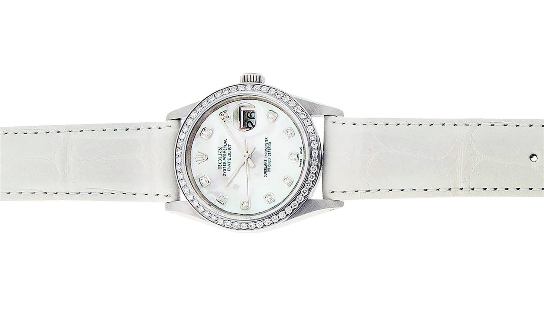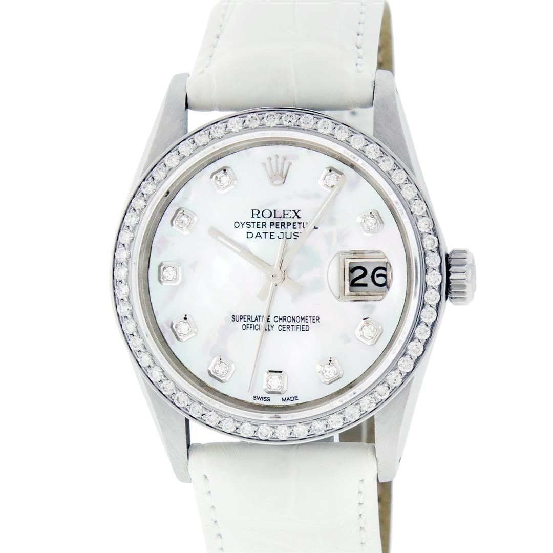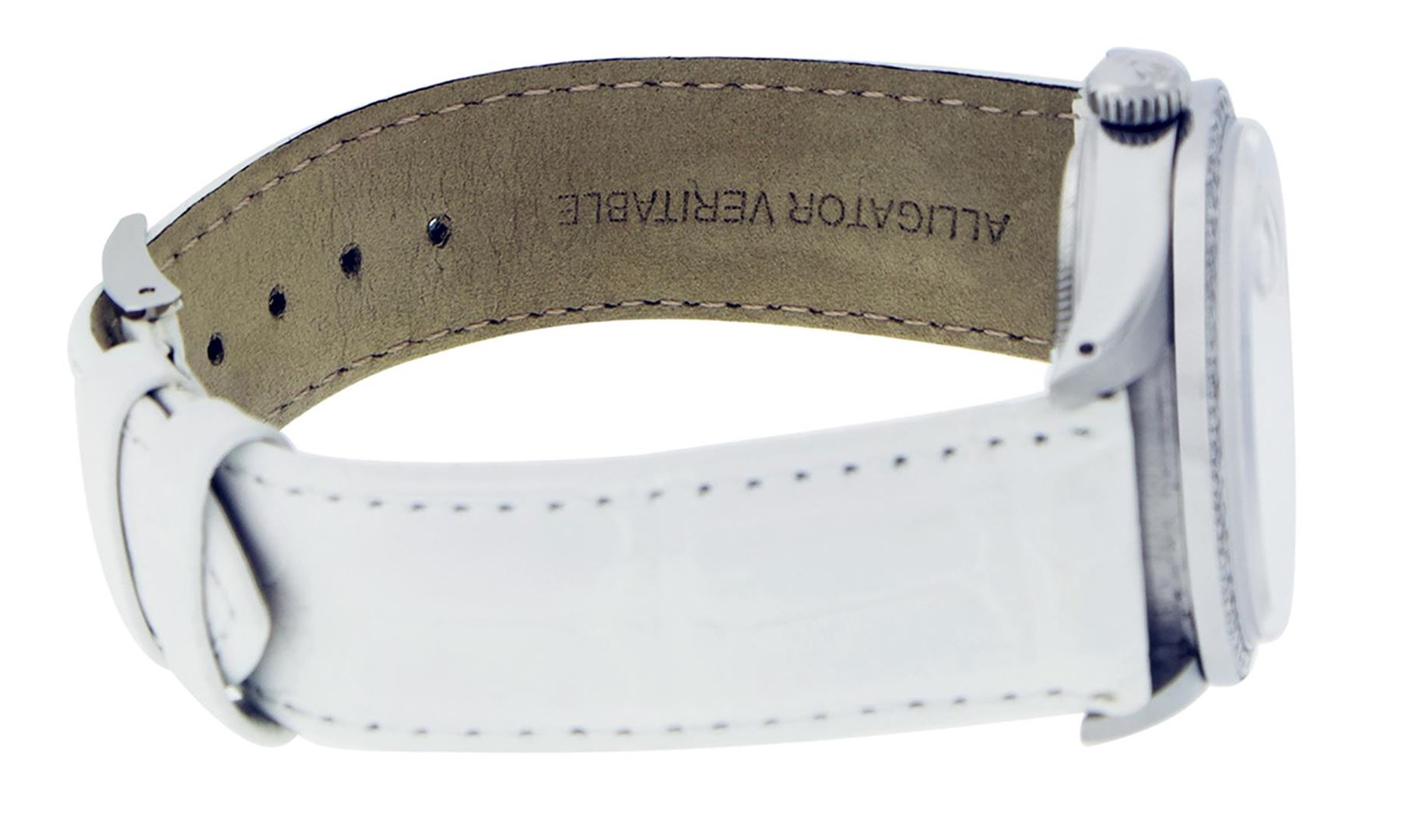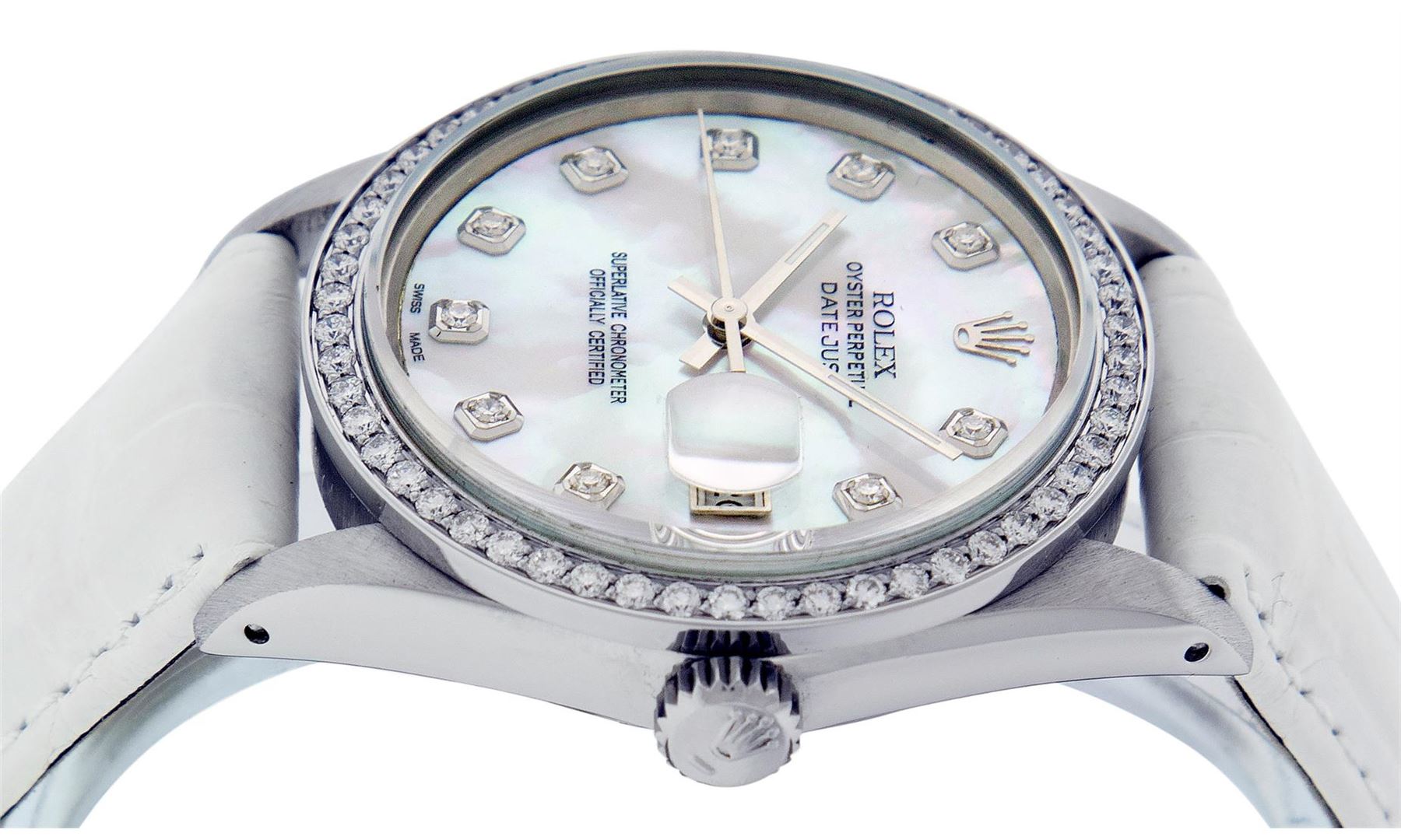 One Mens Pre Owned Rolex Stainless Steel Datejust Polished Bright with Satin Finish, This Watch Has Been Serviced & Electronically Tested, Rolex Stainless Steel Case: 36mm, Rolex Stainless Steel Crown, Custom Bezel: New Stainless Steel Bead set Diamond Be