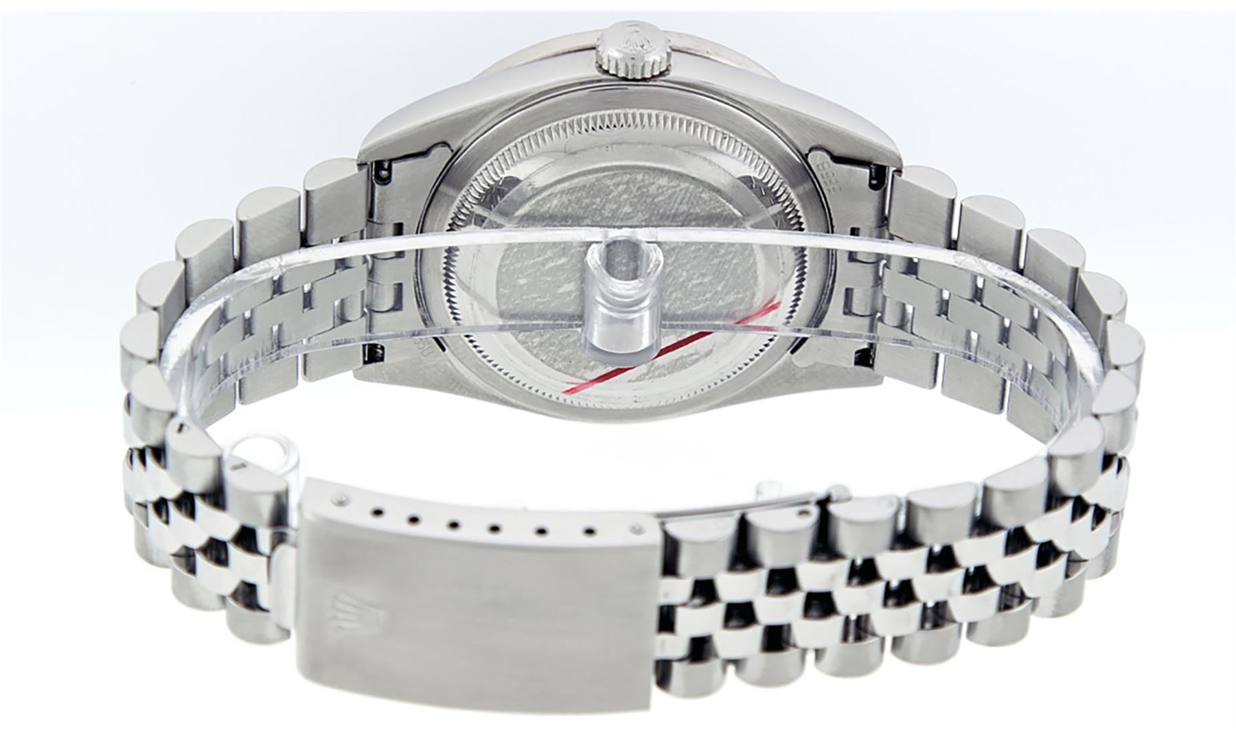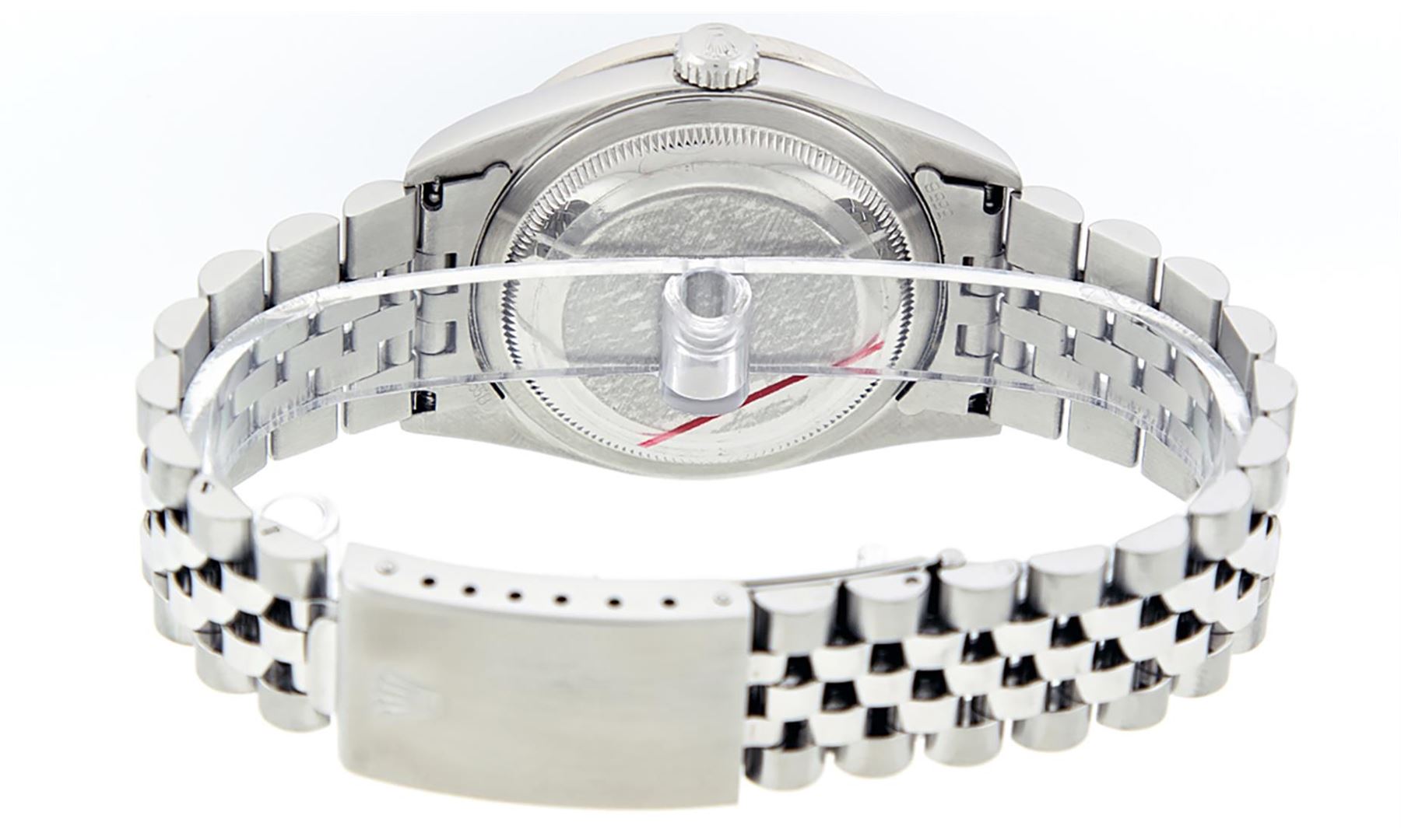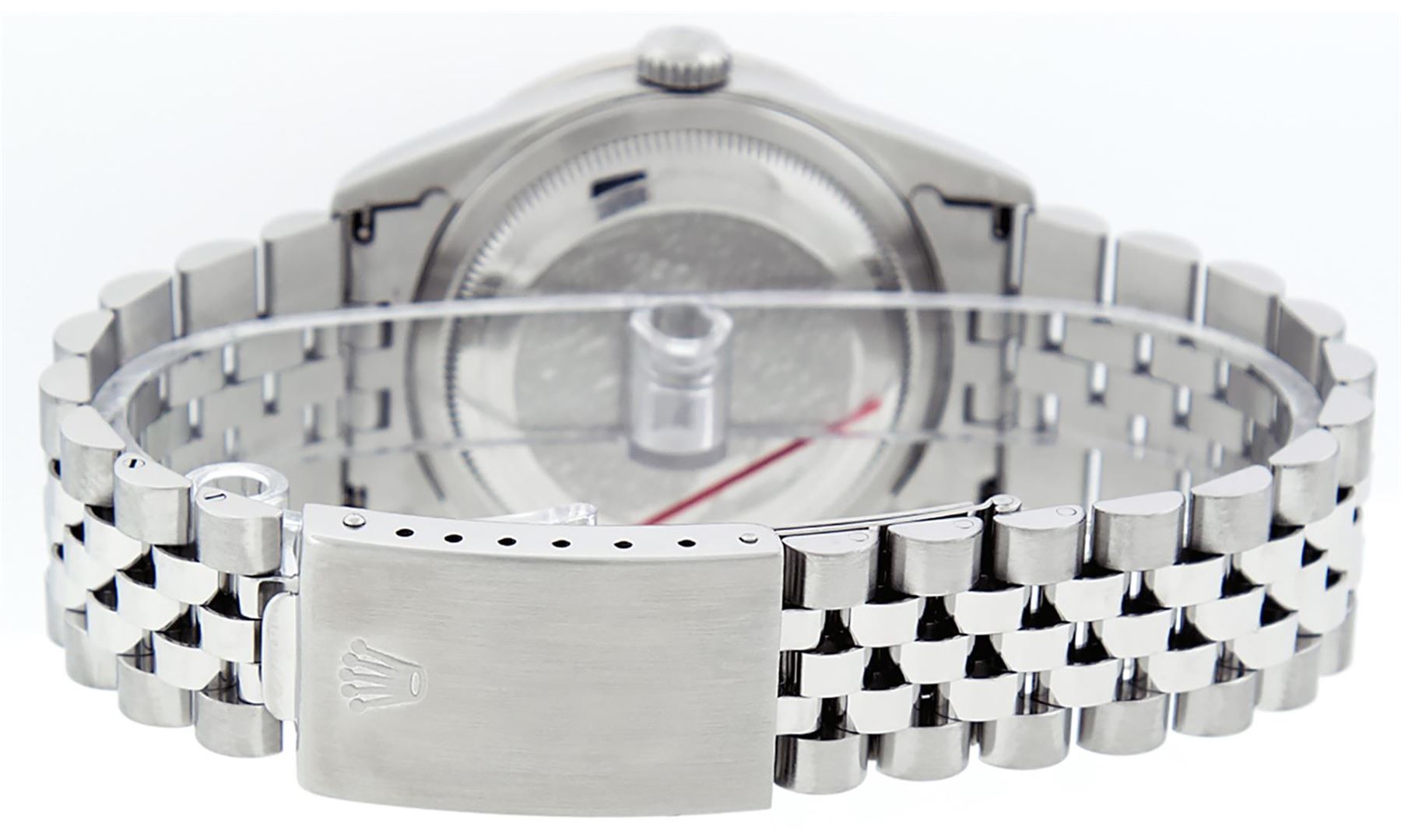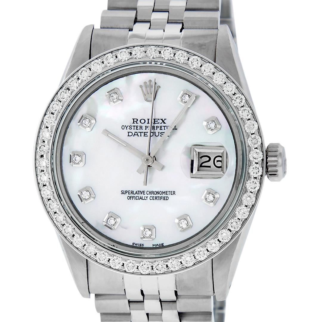 One Mens Pre Owned Rolex Stainless Steel Datejust Polished Bright with Satin Finish, This Watch Has Been Serviced & Electronically Tested, Rolex Stainless Steel Case: 36mm, Rolex Stainless Steel Crown, Custom Bezel: New Stainless Steel Beadset Diamond Bez