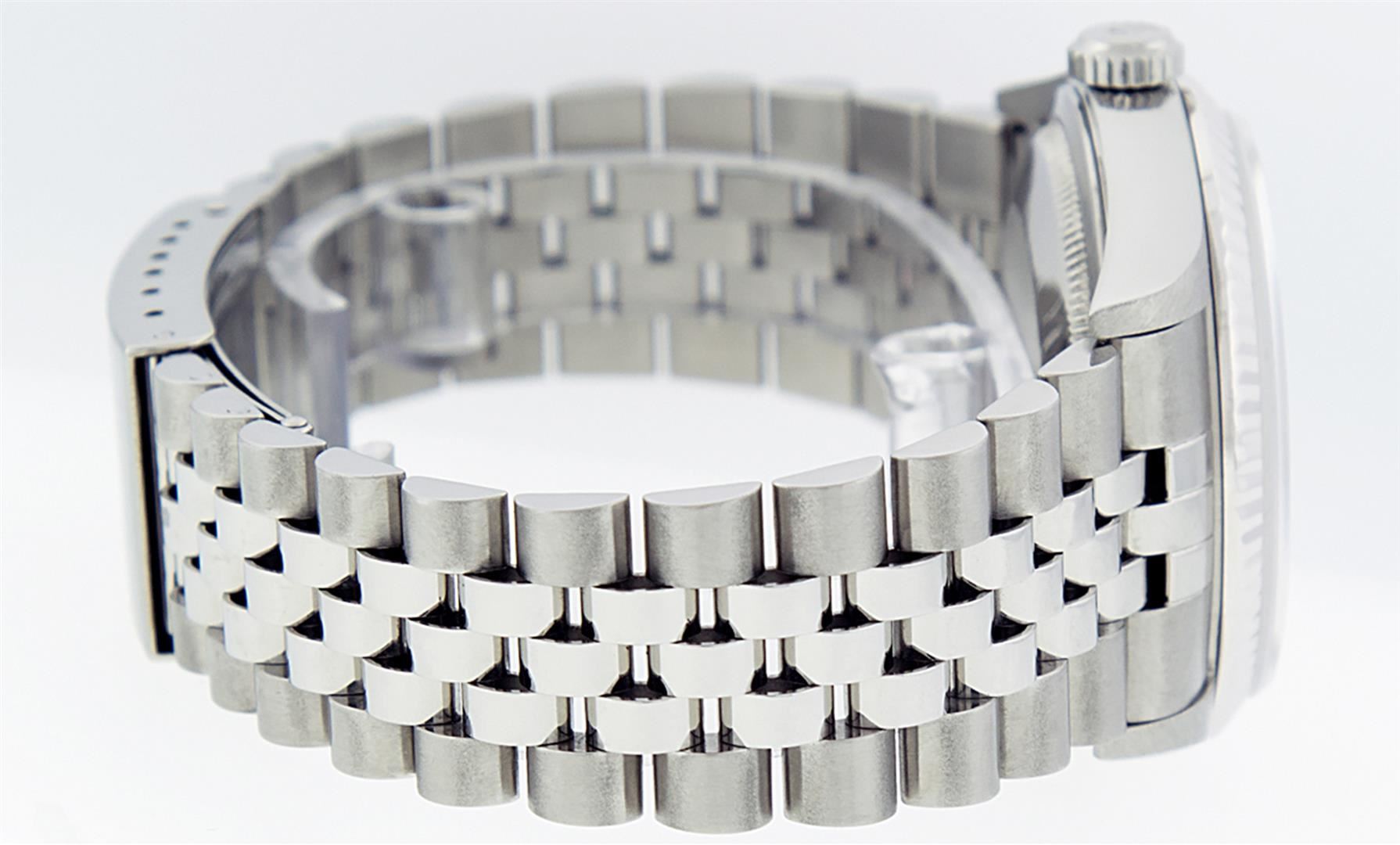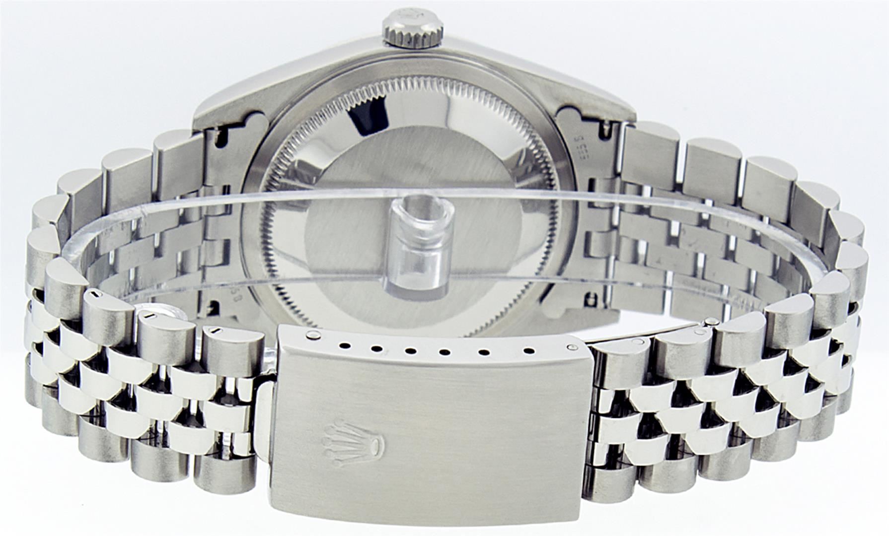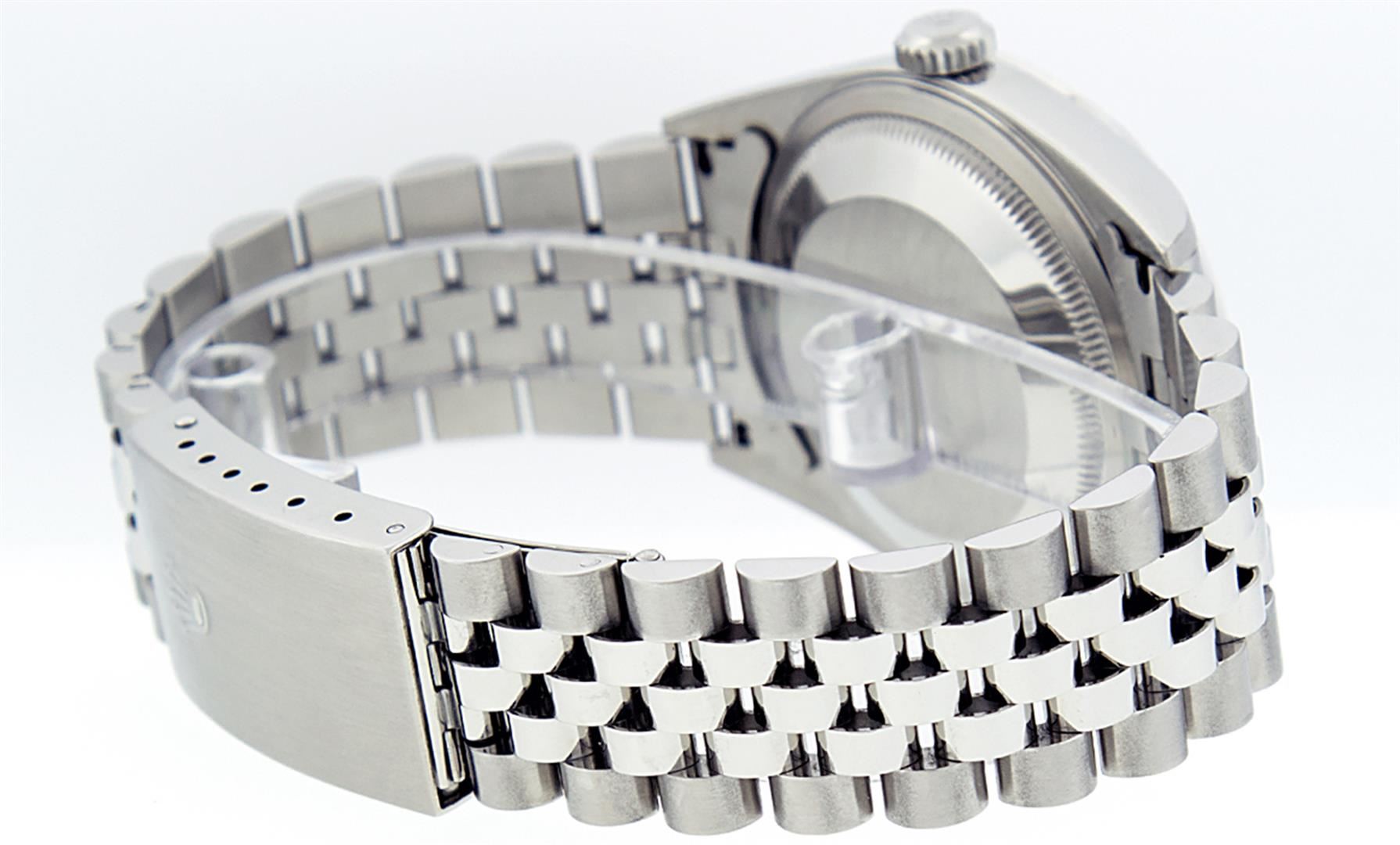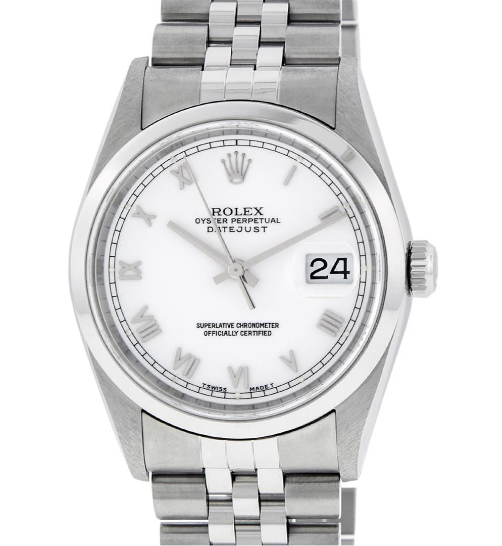 One Mens Rolex Pre Owned Quickset Stainless Steel Datejust Polished Bright with Satin Finish, Serviced & Electronically Tested, Rolex Stainless Steel Case: 36mm, Rolex Stainless Steel Crown, Rolex Bezel: Stainless Steel Smooth Bezel. Crystal: Sapphire With Magnified Date Window. Rolex Movement: Automatic Winding Movement Caliber 3135. Rolex Dial: White Roman With Square Track and Lumi Dot. Date Window: 3 O'Clock Position Date Display, Quickset, Model: Quickset Datejust. Condition: G-6 Extra Fine. Rolex Bracelet: Stainless Steel Jubilee Band. Bright Polish & Satin Finish. 7.0 Inch Length, Adjustable. Standard Clasp, With Rolex Logo. This Pre Owned Watch Has Been Serviced Time Tested And Is In Excellent Condition It Is Free Of All Scratches And Dents.