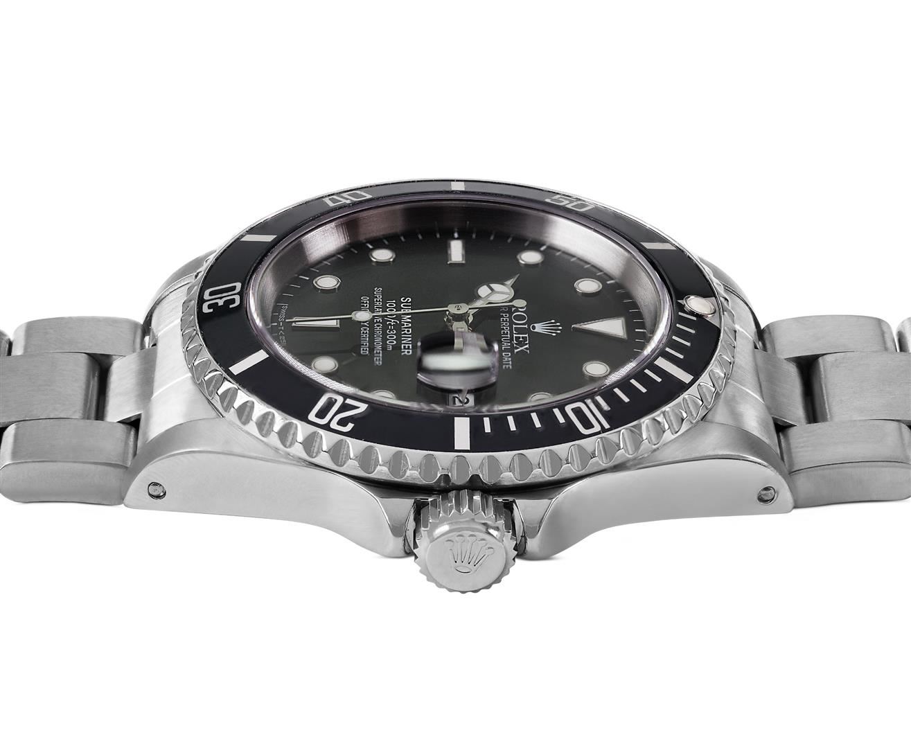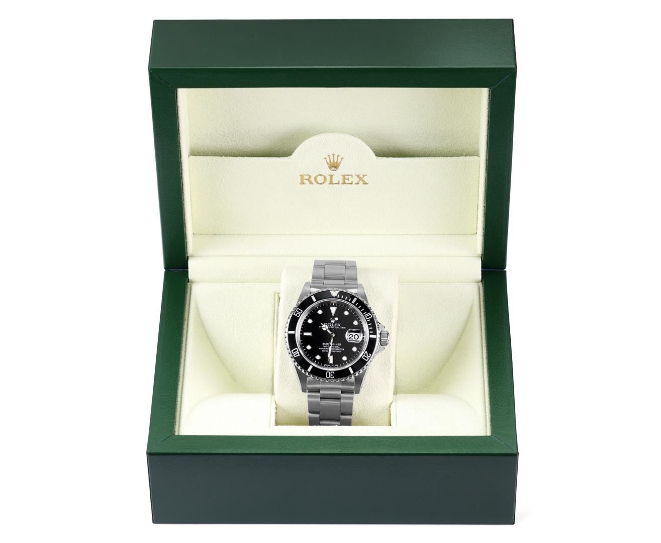 One Mens Pre Owned Stainless Rolex Submariner With Date Polished, Serviced & Electronically Tested, Rolex Stainless Steel Case: 40mm, Rolex Stainless Steel Crown, Rolex Bezel: Stainless Steel Rotatable Bezel With Black Insert. Crystal: Sapphire With Magnified Date Window. Rolex Movement: Automatic Winding Movement Caliber 3135. Rolex Dial: Black Submariner Dial with Luminous Index Hour Markers And Dash Track. Date Window: 3 O'Clock Position Date Display, Model: Date Submariner, Quickset, Condition: G-6 Extra Fine. Rolex Bracelet: Stainless Steel Oyster Band. Bright Polish & Satin Finish. 7.0 Inch Length, Adjustable. Fold Clasp, With Rolex Logo. This Watch Comes With A Rolex Box.