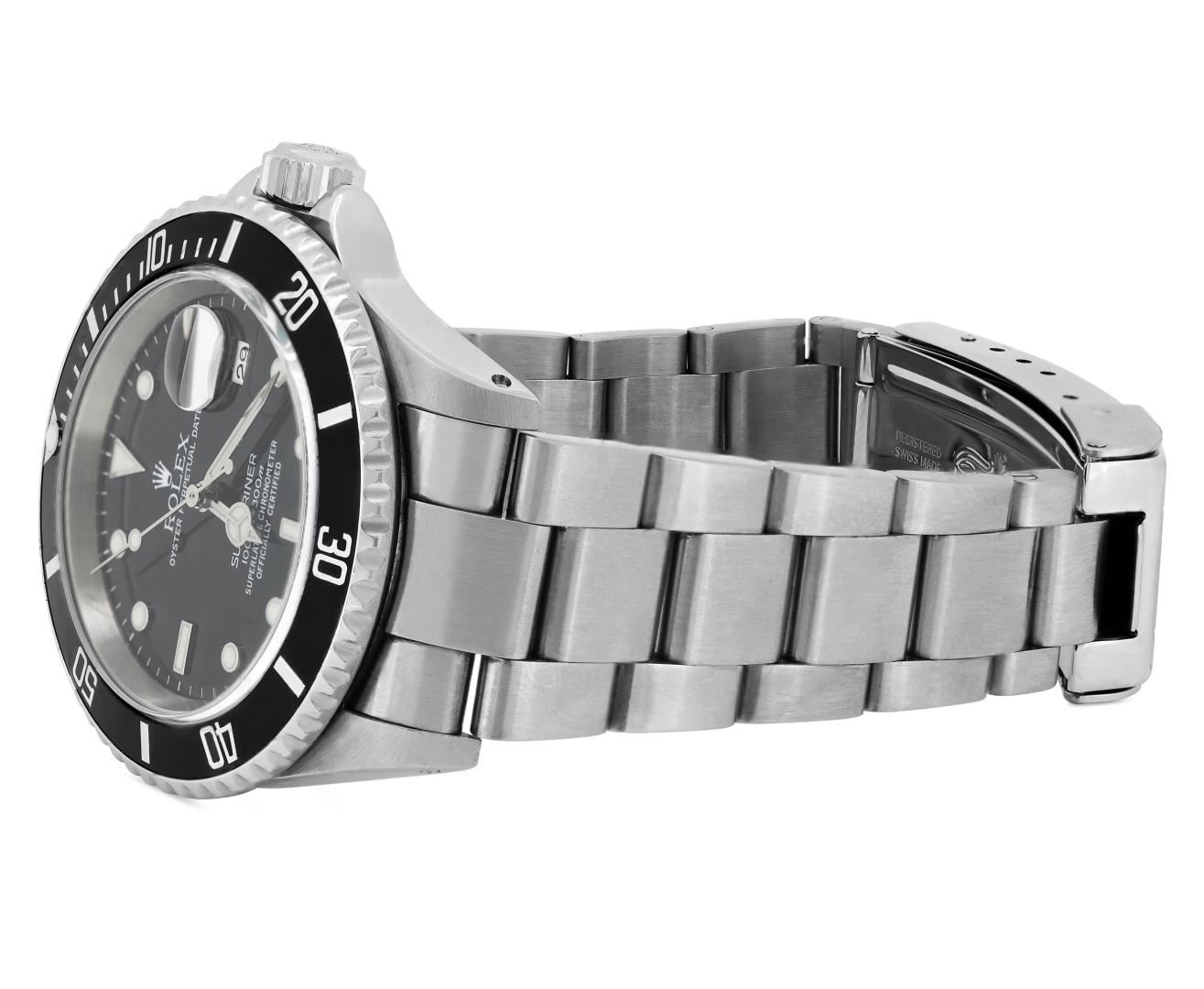 One Mens Pre Owned Stainless Steel Rolex Submariner With Date Polished, Serviced And Electronically Tested, Rolex Stainless Steel Case: 40mm, Rolex Stainless Steel Crown, Rolex Bezel: Stainless Steel Rotatable Bezel With Black Insert. Crystal: Sapphire With Magnified Date Window. Rolex Movement: Automatic Winding Movement Caliber 3135. Rolex Dial: Black Submariner Dial with Luminous Index Hour Markers And Dash Track. Date Window: 3 O'Clock Position Date Display, Model: Date Submariner, Quickset, Condition: G-6 Extra Fine. Rolex Bracelet: Stainless Steel Oyster Band. Bright Polish & Satin Finish. 7.0 Inch Length, Adjustable. Standard Clasp, With Rolex Logo. This Watch Comes With A Rolex Box.