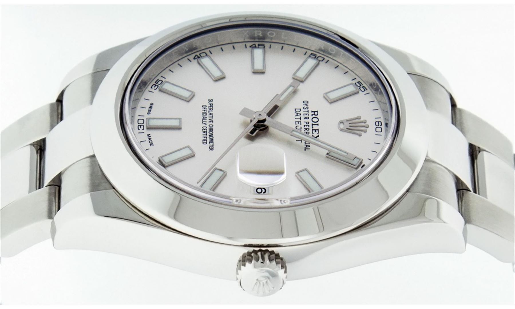 One Mens Rolex Datejust 2 Polished Bright with Shiny Finish, Serviced & Electronically Tested, Rolex Stainless Steel Case: 41mm, Stainless Steel Crown, Rolex Bezel: Stainless Steel Smooth Bezel, Crystal: Scratch Resistant Synthetic Sapphire Cyclops Lens. Rolex Movement: Automatic Winding Movement. Rolex Dial: White Index With Line Track. Date Window: 3 O'Clock Position Date Display, Quickset, Model: Datejust 2. Condition: G-6 Extra Fine. Rolex Bracelet: Stainless Steel Oyster Band. Bright Polish & Satin Finish. 7.0 Inch Length, Adjustable. Standard Clasp, With Rolex Logo. This Pre Owned Watch Has Been Serviced Time Tested And Is In Excellent Condition It Is Free Of All Scratches And Dents.