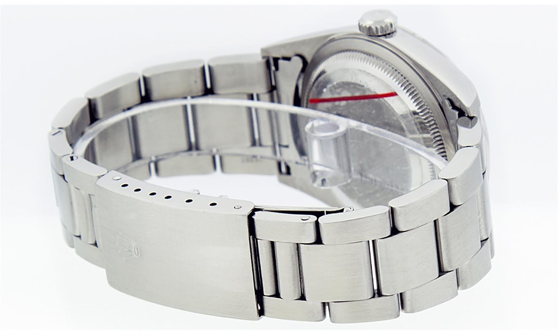 One Mens Rolex Stainless Steel Datejust Polished Bright with Satin Finish, Serviced & Electronically Tested, Rolex Stainless Steel Case: 36mm, Rolex Stainless Steel Crown, Rolex Bezel: Stainless Steel Smooth Bezel. Custom Crystal: New Scratch Resistant Synthetic Sapphire Cyclops Lens. Rolex Movement: Automatic Winding Movement Caliber 3135. Rolex Dial: White Roman With Square Track and Lumi Dot. Custom Hands: New Solid Hands, Date Window: 3 O'Clock Position Date Display, Quickset, Model: Quickset Datejust. Condition: G-6 Extra Fine. Rolex Bracelet: Stainless Steel Oyster Band. Bright Polish & Satin Finish. 7.0 Inch Length, Adjustable. Standard Clasp, With Rolex Logo. This Pre Owned Watch Has Been Serviced Time Tested And Is In Excellent Condition It Is Free Of All Scratches And Dents.