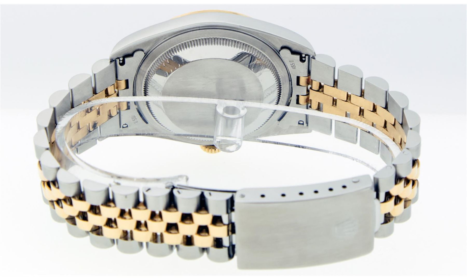 One Mens Rolex Two Tone 18K Yellow Gold And Stainless Steel Datejust Polished, Serviced & Electronically Tested, Yellow Gold & Stainless Steel Case: 36mm, 18K Yellow Gold Crown, Rolex Bezel: 18K Yellow Gold Fluted Bezel. Crystal: Sapphire With Magnified Date Window. Custom Hands: New Luminescent Hands. Rolex Movement: Automatic Winding Movement 3135. Rolex Dial: Cream Jubilee Dial With Arabic Hour Markers. Date Window: 3 O'Clock Position Date Display, Quickset, Model: Datejust. Condition: G-6 Extra Fine. Rolex Bracelet: Two Tone 18K Yellow Gold & Stainless Steel Jubilee Band. Bright Polish. 7.0 Inch Length, Adjustable. Standard Clasp, With Rolex Logo. This Watch Has Been Serviced Time Tested And Is In Excellent Condition It Is Free Of All Scratches And Dents.