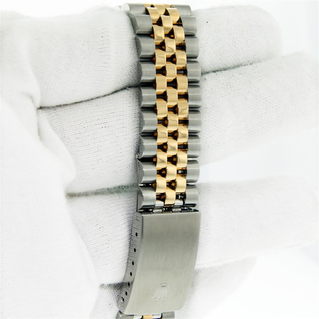 One Mens Yellow Gold Two Tone Rolex Datejust Polished, Serviced & Electronically Tested, Rolex Yellow Gold & Stainless Steel Case: 36mm, Rolex Yellow Gold Crown, Rolex Bezel: 18K Yellow Gold Fluted Bezel. Crystal: Sapphire With Cyclops Lens. Custom Hands: