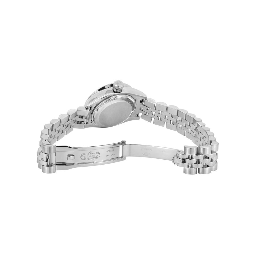 One Rolex Ladies Sapphire Quickset Pre Owned Stainless Steel Datejust Wristwatch Polished Bright with Satin Finish, Serviced & Electronically Tested, Stainless Steel Case: 26mm, Stainless Steel Crown, Custom Bezel: New Stainless Steel Beadset Diamond Beze