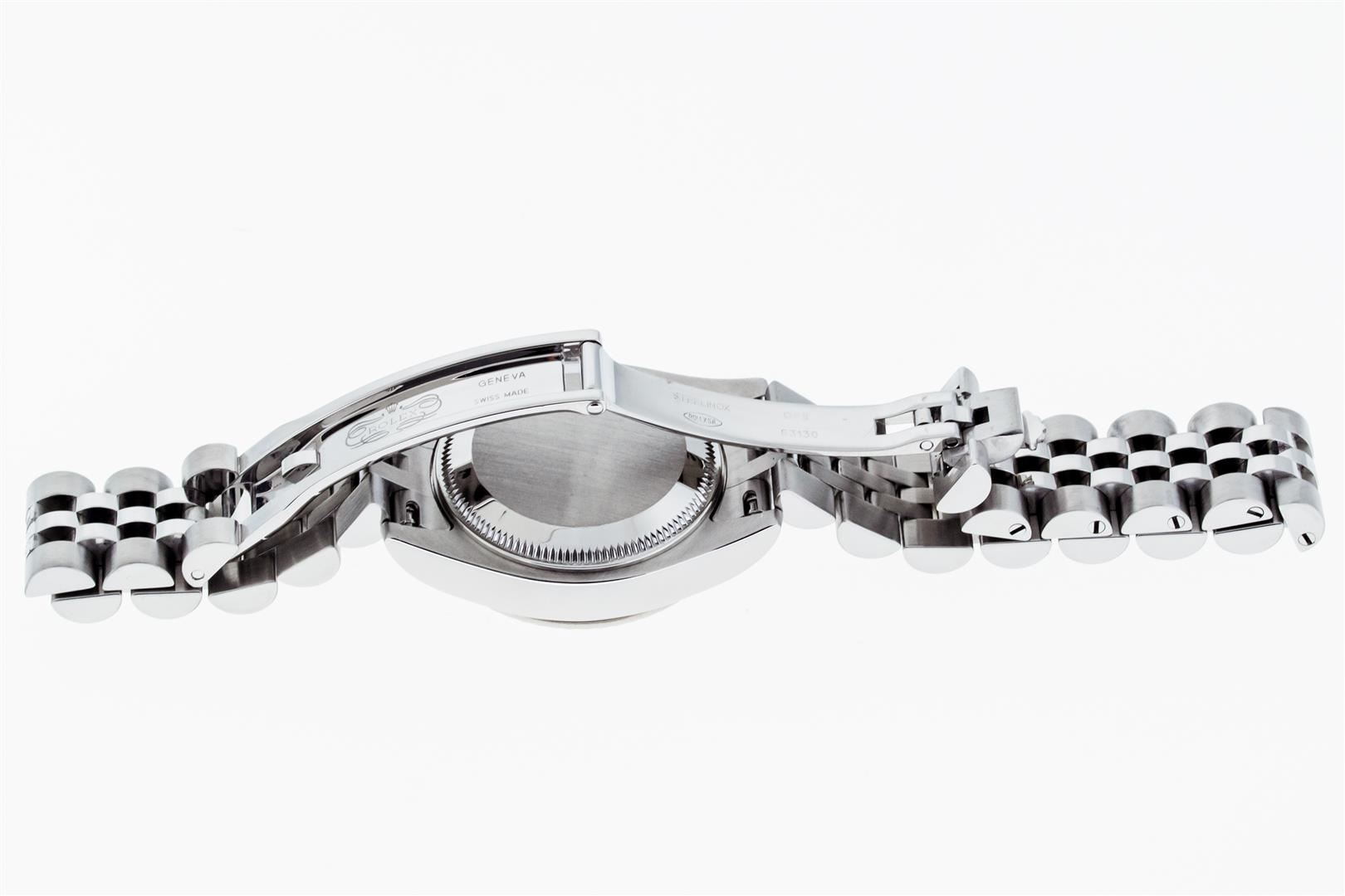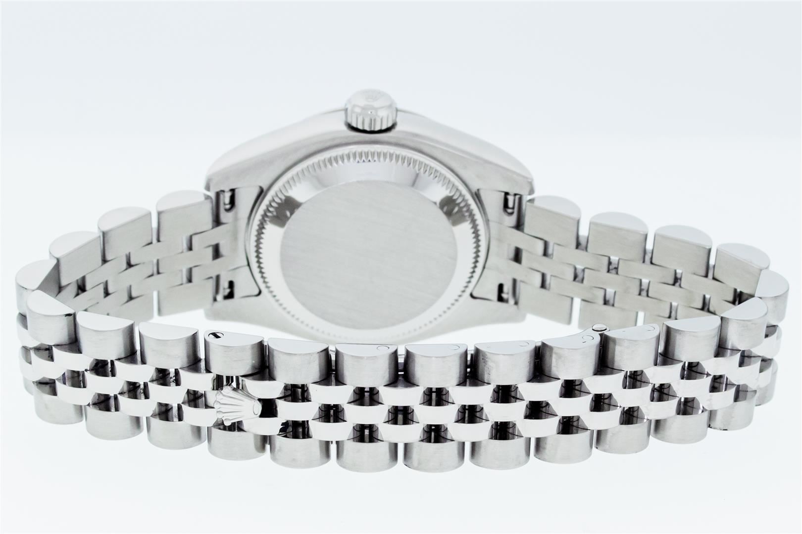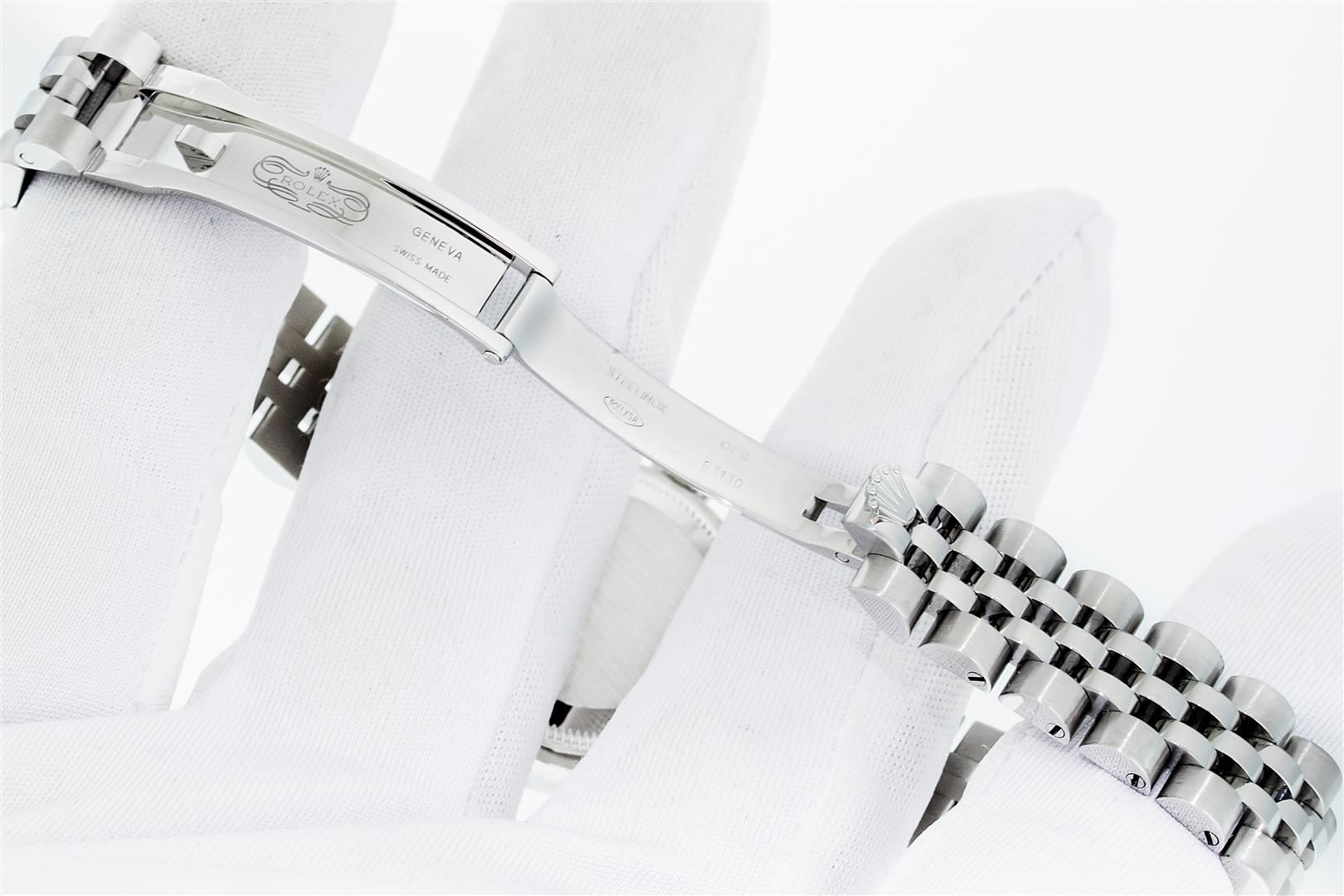 One Ladies Pre Owned Quickset Sapphire Stainless Steel Rolex Datejust Polished Bright with Satin Finish, Serviced & Electronically Tested, Rolex Stainless Steel Case: 26mm, Rolex Stainless Steel Crown, Rolex Bezel: 18K White Gold Fluted Bezel. Crystal: Sapphire With Magnified Date Window. Hands: Luminescent Hands. Rolex Movement: Automatic Winding Movement 2235. Rolex Dial: White Index With Dash Track. Date Window: 3 O'Clock Position Date Display, Model: Sapphire Quickset Datejust. Condition: G-6 Extra Fine. Rolex Bracelet: Stainless Steel Jubilee Band. Bright Polish & Satin Finish. 6.0 Inch Length, Adjustable. Hidden Clap, With Rolex Logo. This Watch Has Been Serviced Time Tested And Is In Excellent Condition It Is Free Of All Scratches And Dents.