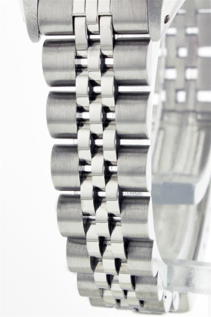 One Ladies Rolex Datejust Polished Bright with Satin Finish, Serviced & Electronically Tested, Stainless Steel Case:26mm, Stainless Steel Crown, Custom Bezel: Stainless Steel Beadset Diamond Bezel, Diamond Count: 40 Diamonds Total Weight 1.00 Carat, Clarity: SI-VS, Color: G to H. Custom Crystal: Synthetic Sapphire Cyclops Lens. Movement: Automatic Winding Movement Caliber 2030. Custom Dial: Pink Mother Of Pearl Dial With Diamond Hour Markers, Diamond Count: 10 Diamonds In Dial, Clarity: SI-VS, Color: G to H. Date Window: 3 O'Clock Position Date Display, Non Quickset, Model: 6917 Condition: G-6 Extra Fine. Bracelet: Stainless Steel Jubilee. Bright Polish & Satin Finish. 5.5 Inch Length, Adjustable. Standard Clasp, With Rolex Logo.