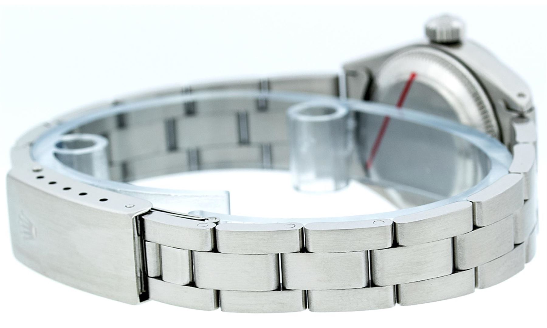 One Ladies Rolex Datejust Polished Bright with Satin Finish, Serviced & Electronically Tested, Stainless Steel Case:26mm, Stainless Steel Crown, Bezel: Stainless Steel Smooth Bezel. Custom Crystal: Acrylic Cyclops Lens. Movement: Automatic Winding Movement Caliber 2030. Dial: Salmon Arabic Dial. Date Window: 3 O'Clock Position Date Display, Model: Datejust. Condition: G-6 Extra Fine. Bracelet: Stainless Steel Oyster Band. Bright Polish & Satin Finish. 6.0 Inch Length, Adjustable. Standard Clasp, With Rolex Logo. Comes with 6 month warranty.