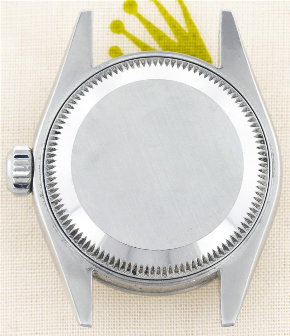 One Ladies Rolex Datejust Polished Bright with Satin Finish, Serviced & Electronically Tested, Stainless Steel Case:26mm, Stainless Steel Crown, Custom Bezel: 14K White Gold Fluted. Custom Crystal: Synthetic Sapphire Cyclops Lens. Movement: Automatic Winding Movement Caliber 2030. Custom Dial: Pink Mother Of Pearl With Diamond Hour Markers, Diamond Count: 10 Diamonds, Clarity: SI-VS, Color: G to H. Date Window: 3 O'Clock Position Date Display, Non Quickset, Model: 6917 Condition: G-6 Extra Fine. Bracelet: Stainless Steel Jubilee Band. Bright Polish & Satin Finish. 5.5 Inch Length, Adjustable. Standard Clasp, With Rolex Logo.