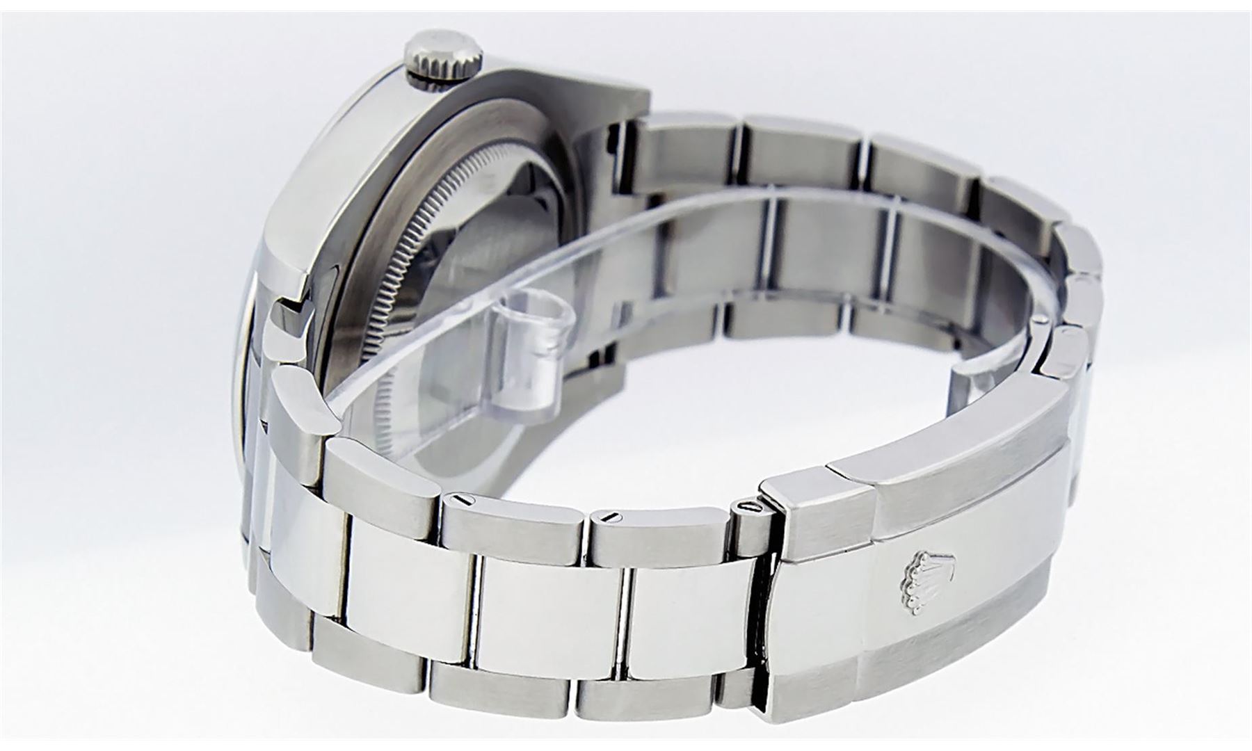 One Mens Rolex Datejust 2 Polished Bright with Shiny Finish, Serviced & Electronically Tested, Stainless Steel Case:41mm, Stainless Steel Crown, Bezel: Stainless Steel Smooth Bezel, . Crystal: Synthetic Sapphire Cyclops Lens. Movement: Automatic Winding Movement Caliber 3136. Custom Dial: Red Roman Diamond Dial, Diamond Color: G To H, Clarity: SI-VS. Date Window: 3 O'Clock Position Date Display, Quickset, Model: 116300 Datejust 2. Condition: G-6 Extra Fine The Watch Is In Very Good Condition Free Of All Scratches And Dents. Bracelet: Stainless Steel Oyster Band. Bright Polish & Satin Finish. 7.5 Inch Length, Adjustable. Standard Clasp, With Rolex Logo. Comes with 6 month warranty.