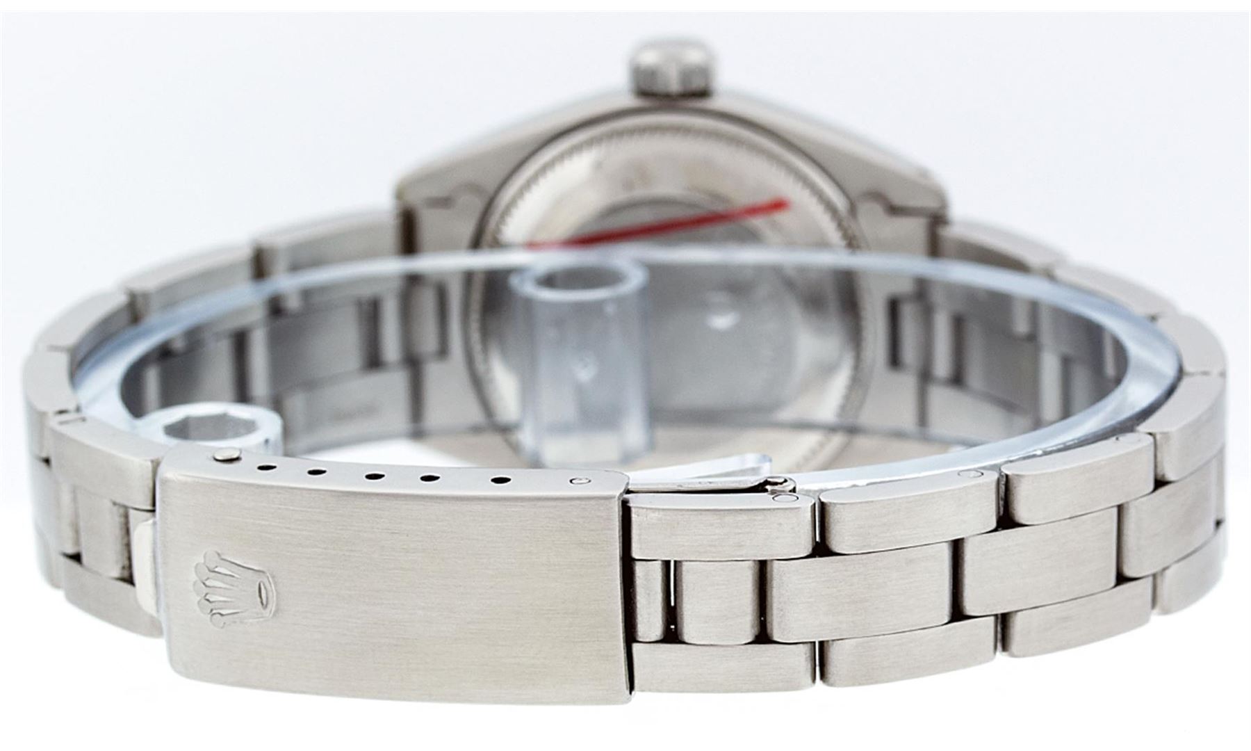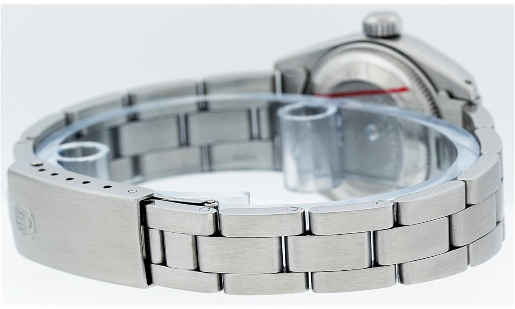 One Ladies Rolex Datejust Polished Bright with Satin Finish, Serviced & Electronically Tested, Stainless Steel Case:26mm, Stainless Steel Crown, Bezel: 14K White Gold Fluted. Custom Crystal: Acrylic Cyclops Lens. Movement: Automatic Winding Movement Caliber 2030. Custom Dial: Mother Of Pearl With Diamond Hour Markers, Diamond Count: 10 Diamonds, Clarity: SI-VS, Color: G to H. Date Window: 3 O'Clock Position Date Display, Model: Datejust. Condition: G-6 Extra Fine. Bracelet: Stainless Steel Oyster Band. Bright Polish & Satin Finish. 6.0 Inch Length, Adjustable. Standard Clasp, With Rolex Logo. Comes with 6 month warranty.