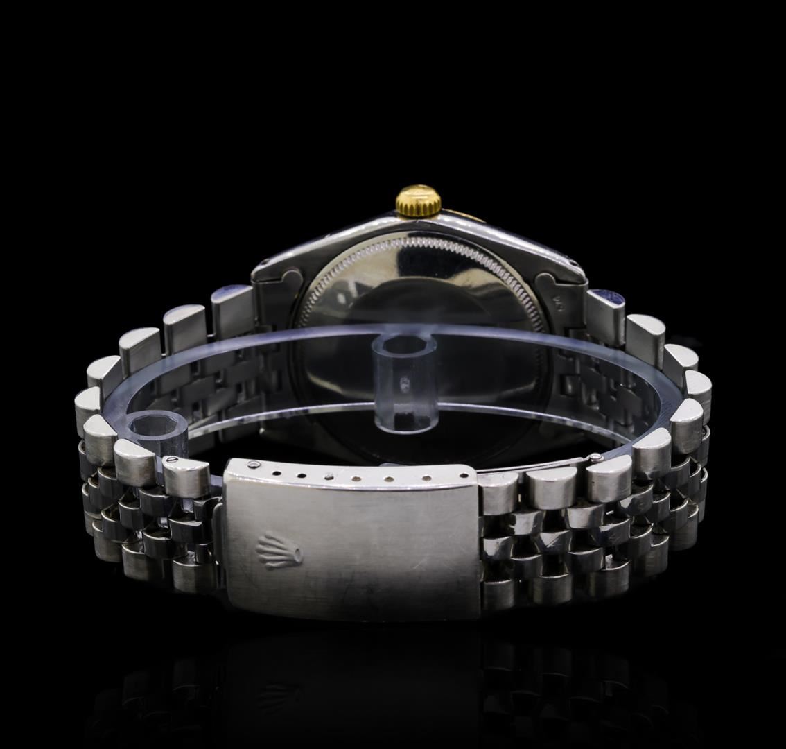 One, gents, hand crafted & machine milled Rolex Oyster Perpetual wristwatch electronically tested Stainless Steel, Case: 35mm oyster, Crown: 14KT yellow gold twinlock, with Rolex logo, Bezel: 14KT yellow gold with a high polish finish, Crystal: acrylic lens, Circa 1967.Movement: mechanical stem wind, certified chronometer, Rolex signed Dial: Champagne color, with baton hands and raised indices, Rolex Bracelet: Stainless Steel jubilee links, Condition: G-5 Fine. Six and one half inch adjustable length. Standard Rolex clasp, with logo. Total Weight of Watch 75.66gm. AIG Appraised at $5,150.00.