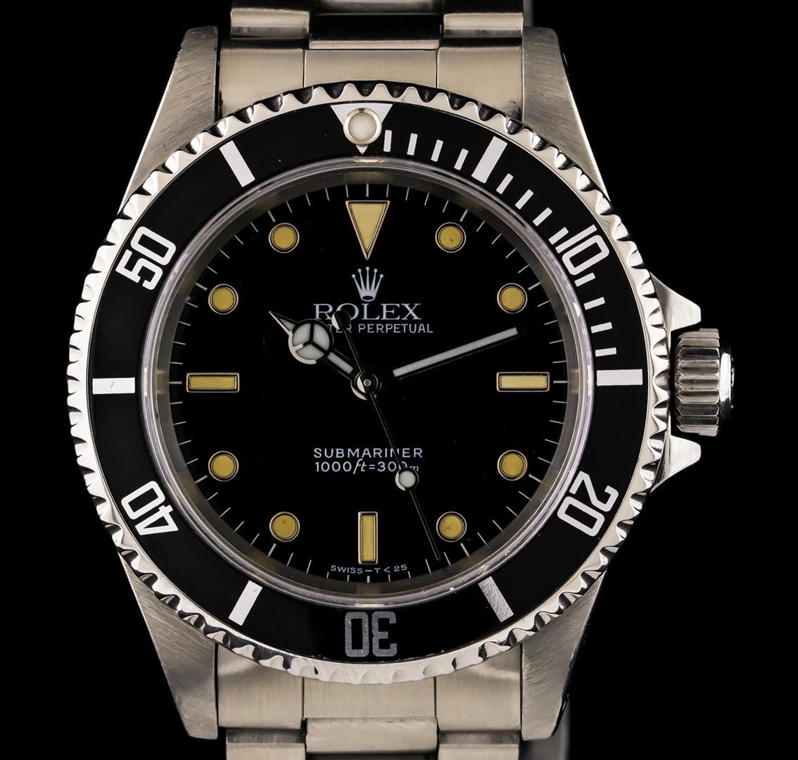 One gents, hand crafted & machine milled Rolex Stainless Steel Submariner model wristwatch electronically tested, Case: 39mm oyster, Water Resistant: 300 meters / 1000 feet, Crown: twin lock with logo, set within protective shoulders, Bezel: Black insert, unidirectional for up to sixty minute time lapse, Crystal: synthetic sapphire lens. Movement: superlative chronometer, Dial: Black, with Blue luminous hands and indices, Circa: 1994, Oyster Bracelet: stainless steel, Oyster flip lock clasp with divers extension, bright polish and brushed finish, Condition: G-6 Extra Fine. Eight inch length, adjustable. Total Weight of Watch 124.87gm. AIG Appraised at $6,880.00.