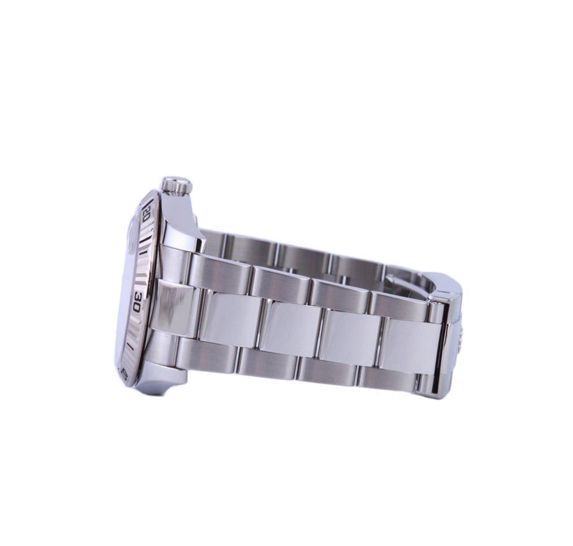 One gents stainless steel Rolex DateJust wristwatch. Model Name/Number: Thunderbird DateJust 116264. The watch features automatic movement with date, scratch-resistant sapphire crystal, 31 jewels, waterproof screw-down crown. Case: Stainless steel with18k white gold Thunderbird (rotatable timing) bezel (36mm). Dial: Blue luminous index with red second hand and red date wheel. Bracelet: Stainless steel Oyster.