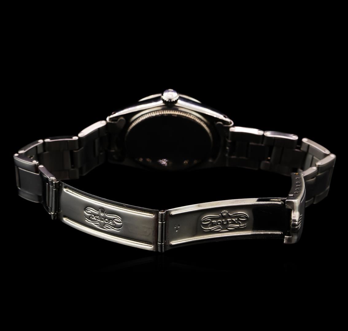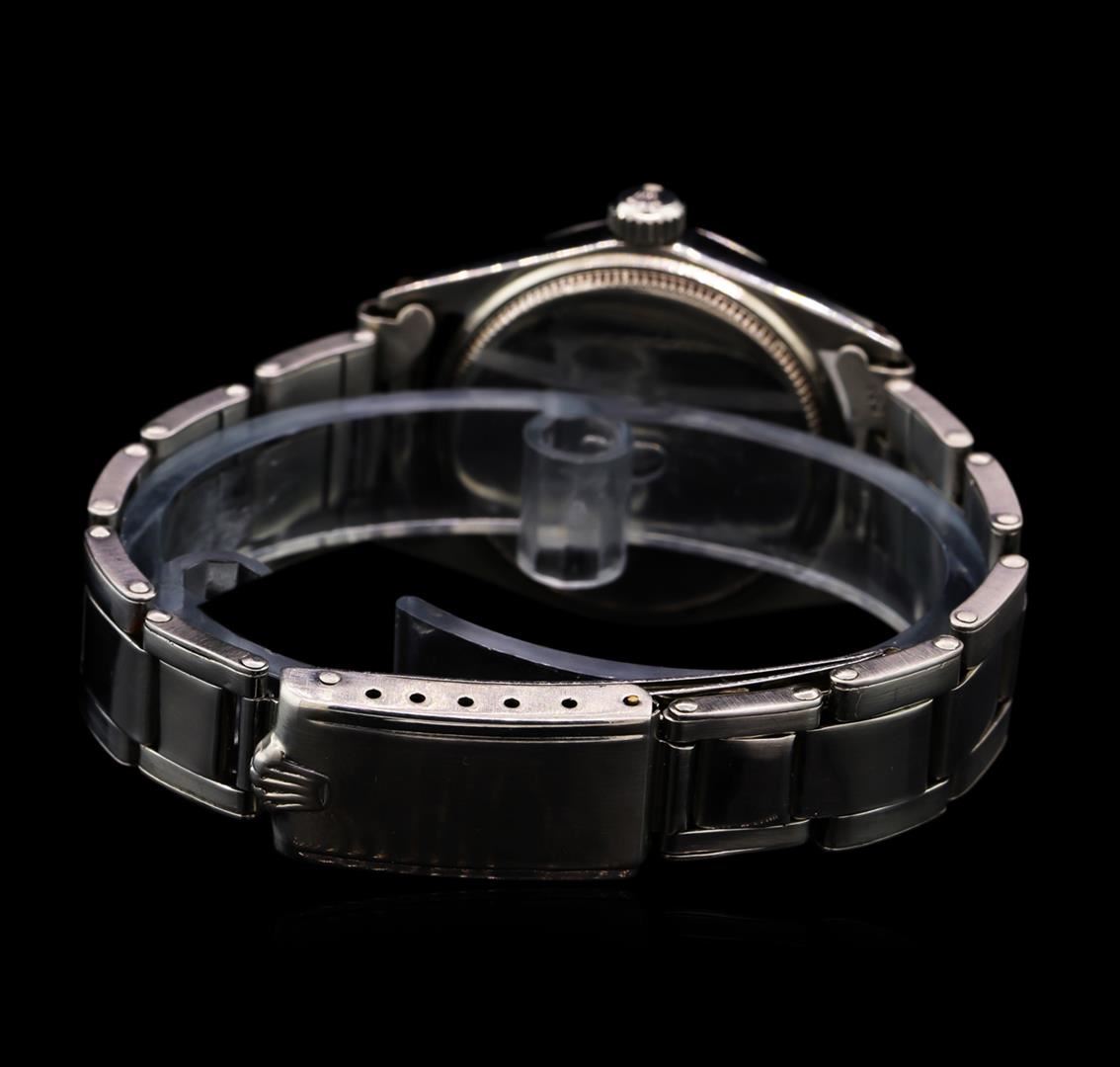 One, hand crafted & machine milled vintage Rolex, the Mid-Size DateJust wristwatch electronically tested Stainless Steel, Case: 30mm oyster, Crown: twinlock with logo, Bezel: high polish finish, Crystal: acrylic cyclops lens, Circa: 1964. Movement: superlative chronometer, Rolex signed Customized Dial: Yellow color, with baton hands, and diamond markers, Date Window: 3 o'clock position, non-quick-set, Rolex Bracelet: Stainless Steel tapering oyster links, bright polish & brushed finish, Condition: G-5 Fine. Six and one half inch length, adjustable. Standard Rolex clasp, with logo. Total Weight of Watch 48.27gm. AIG Appraised at $4,990.00.