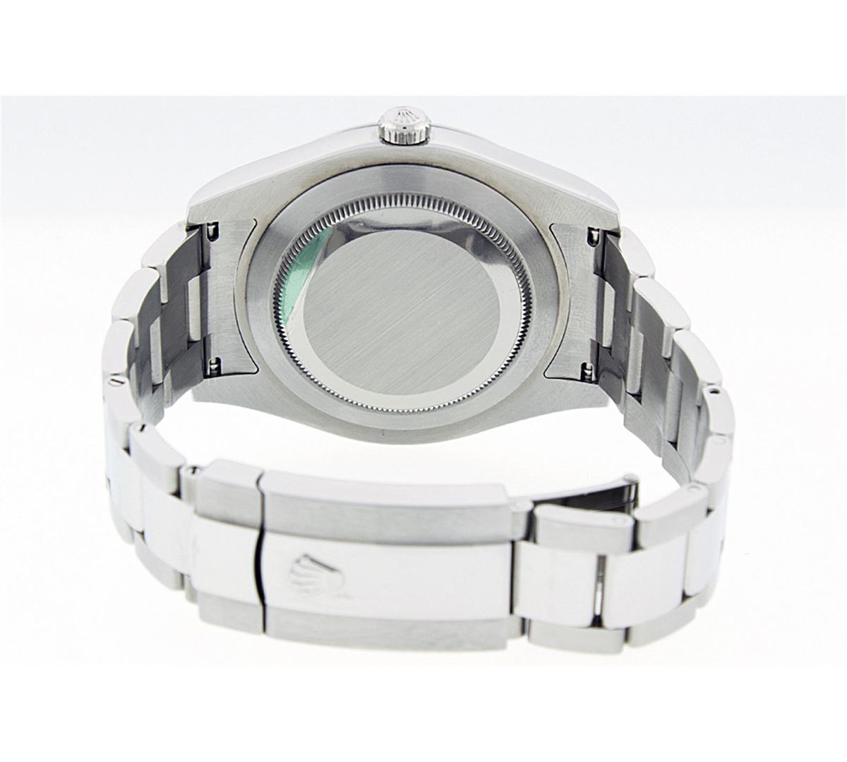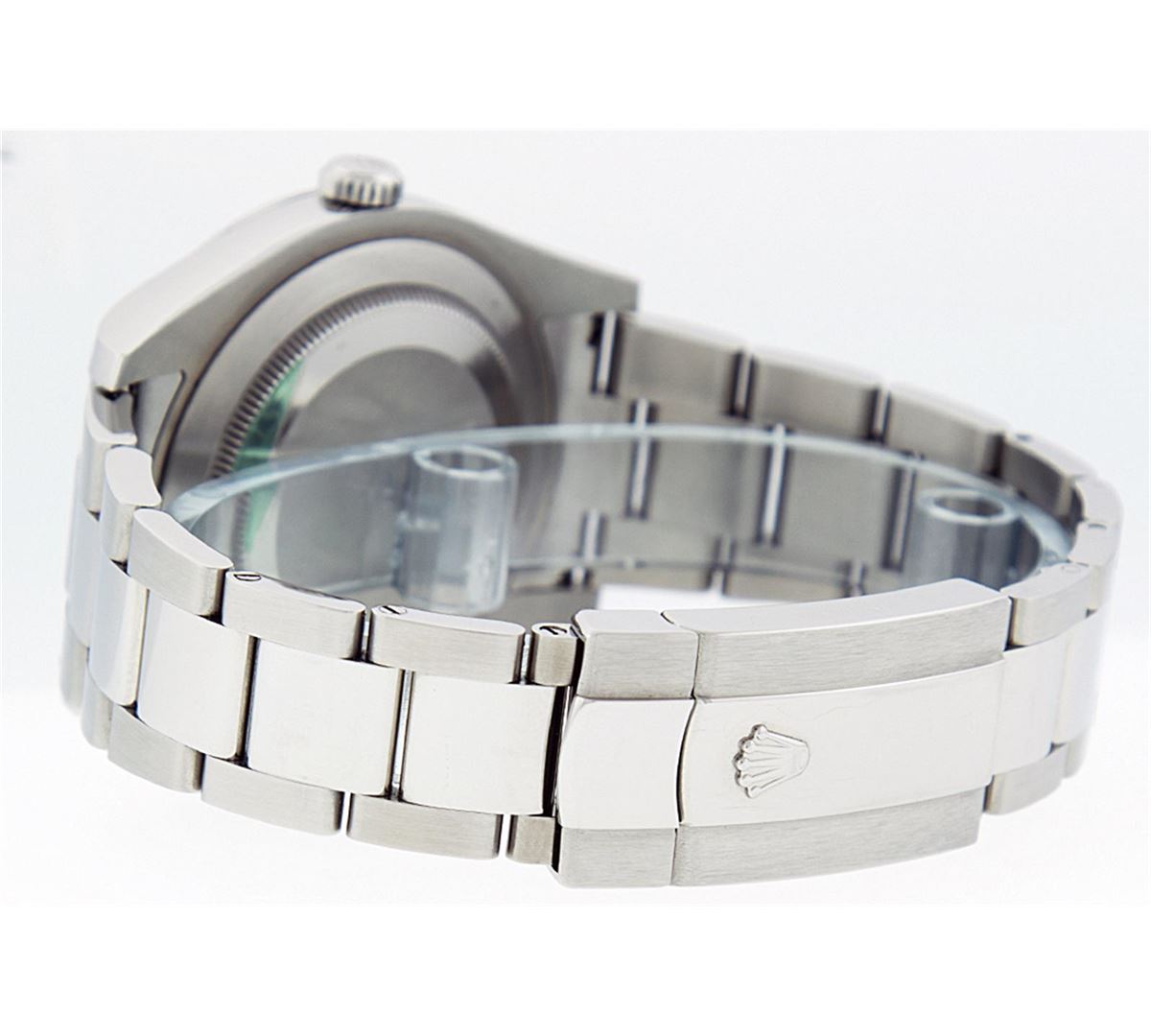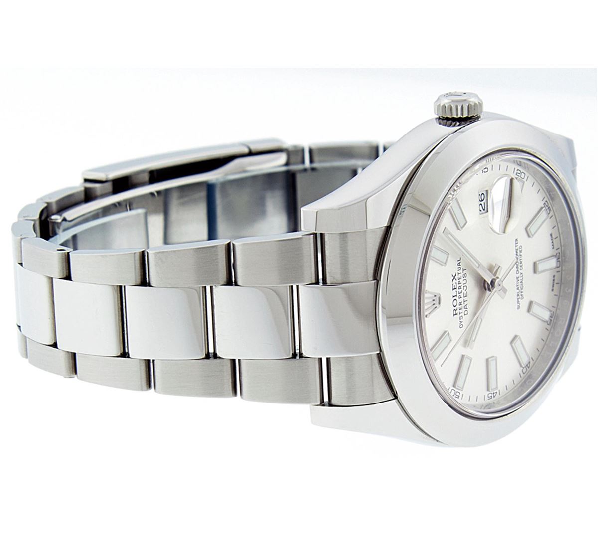 One Mens Rolex Datejust 2 Polished Bright with Satin Finish, Serviced & Electronically Tested, Stainless Steel Case:41mm, Stainless Steel Crown, Bezel: Stainless Steel Smooth Bezel, . Crystal: Synthetic Sapphire Cyclops Lens. Movement: Automatic Winding Movement Caliber 3136. Dial: White Index With Line Track. Date Window: 3 O'Clock Position Date Display, Quickset, Model: 116300 Datejust 2. Condition: G-6 Extra Fine. Bracelet: Stainless Steel Oyster Band. Bright Polish & Satin Finish. 7.5 Inch Length, Adjustable. Standard Clasp, With Rolex Logo. Comes with a 6 month warranty card.