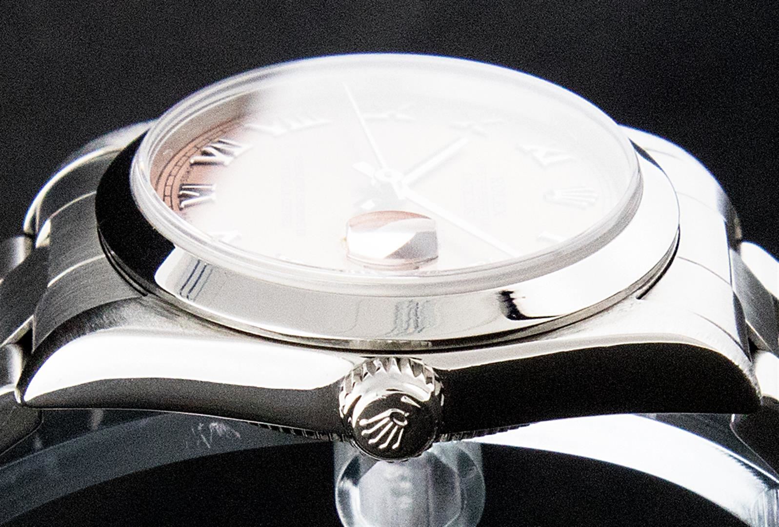One Women's Pre Owned Midsize Stainless Steel Rolex Datejust Polished, Serviced & Electronically Tested, Rolex Stainless Steel Case Case: 31mm, Rolex Stainless Steel Crown, Rolex Bezel: Stainless Steel Smooth Bezel, Crystal: Sapphire Cyclops Lens. Hands: Solid Hands. Rolex Movement: Automatic Winding Movement Caliber 2135. Rolex Dial: Salmon Roman Dial With Square Track. Date Window: 3 O'Clock Position Date Display, Quickset, Model: Midsize Datejust. Condition: G-6 Extra Fine. Rolex Bracelet: Stainless Steel Oyster Band. Bright Polish. 6.0 Inch Length, Adjustable. Standard Clasp, With Rolex Logo. This Watch Has Been Serviced Time Tested And Is In Excellent Condition It Is Free Of All Scratches And Dents.