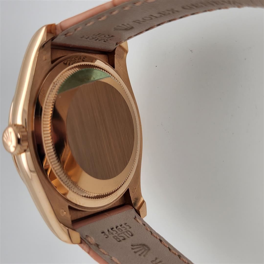 One Rolex Rose Gold Genuine Alligator Leather Wristwatch.