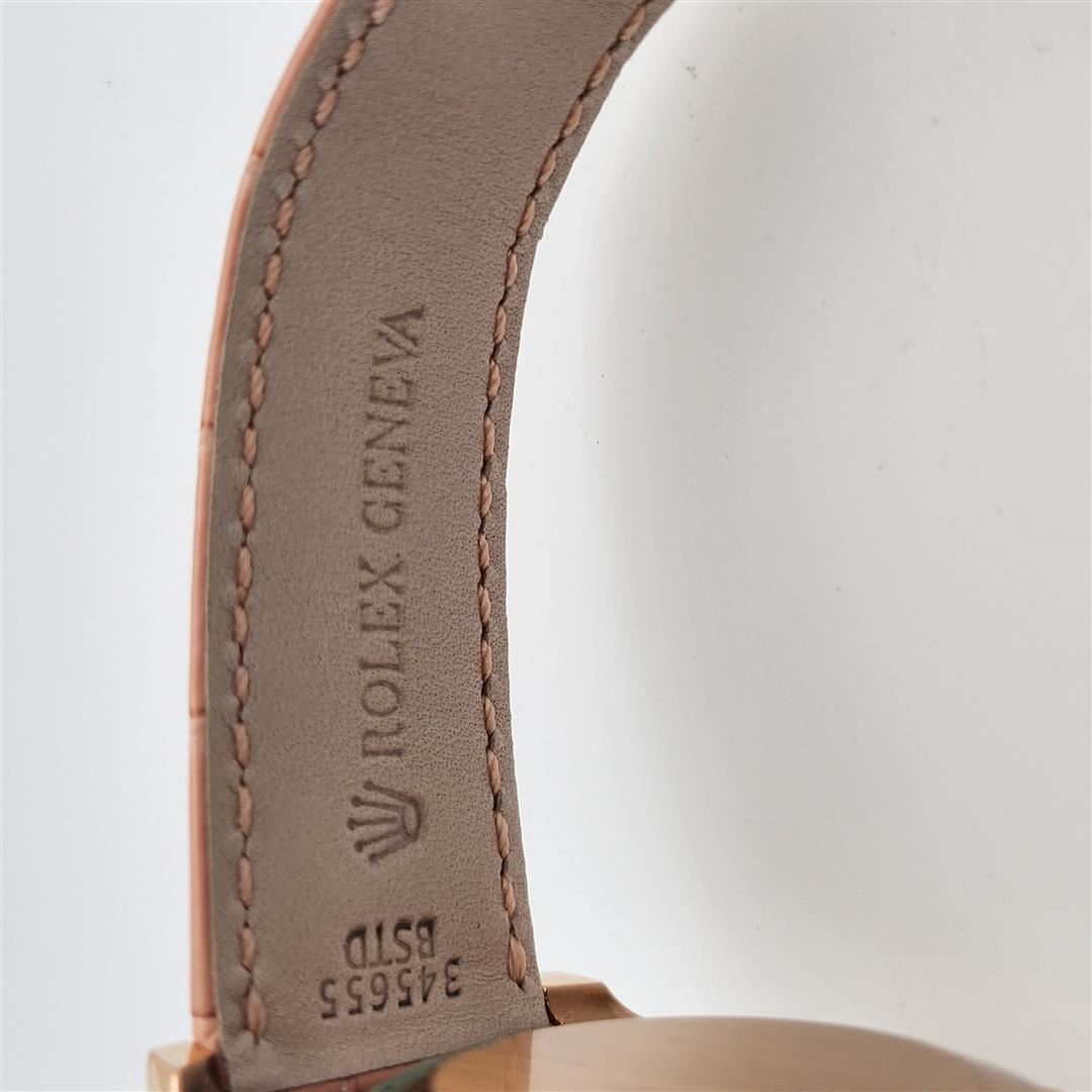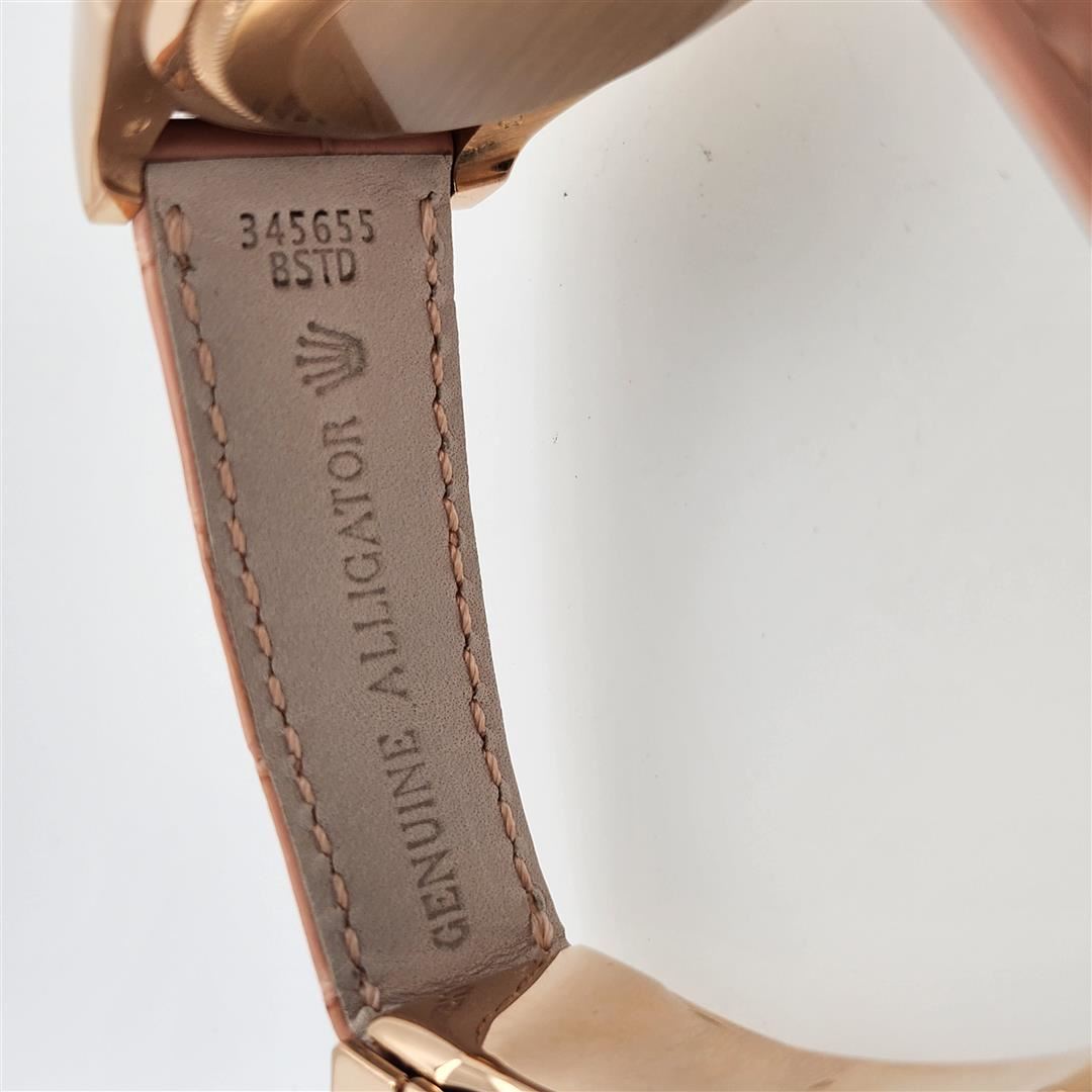 One Rolex Rose Gold Genuine Alligator Leather Wristwatch.