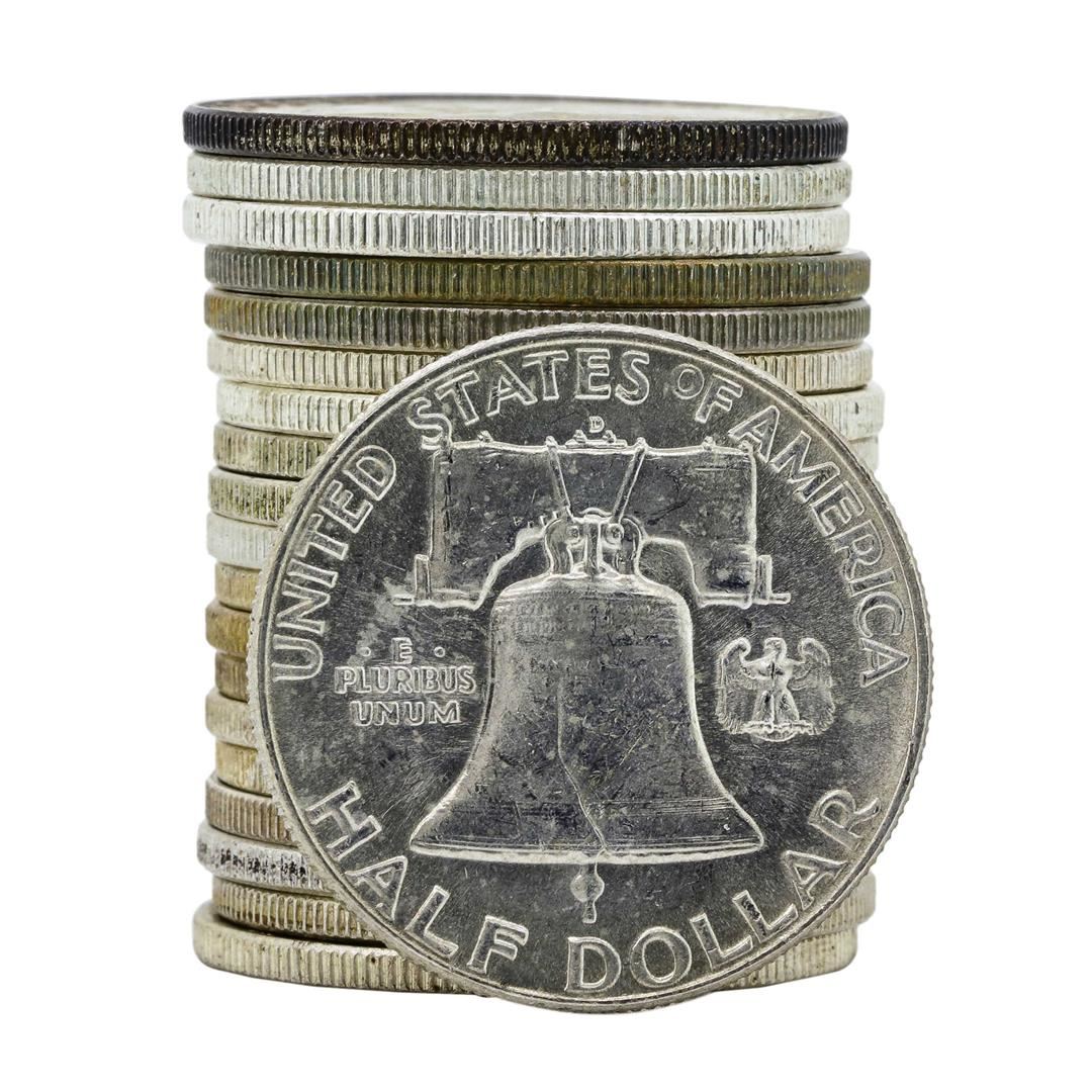 One Roll of (20) 1953-D Brilliant Uncirculated Franklin Half Dollar Coins.