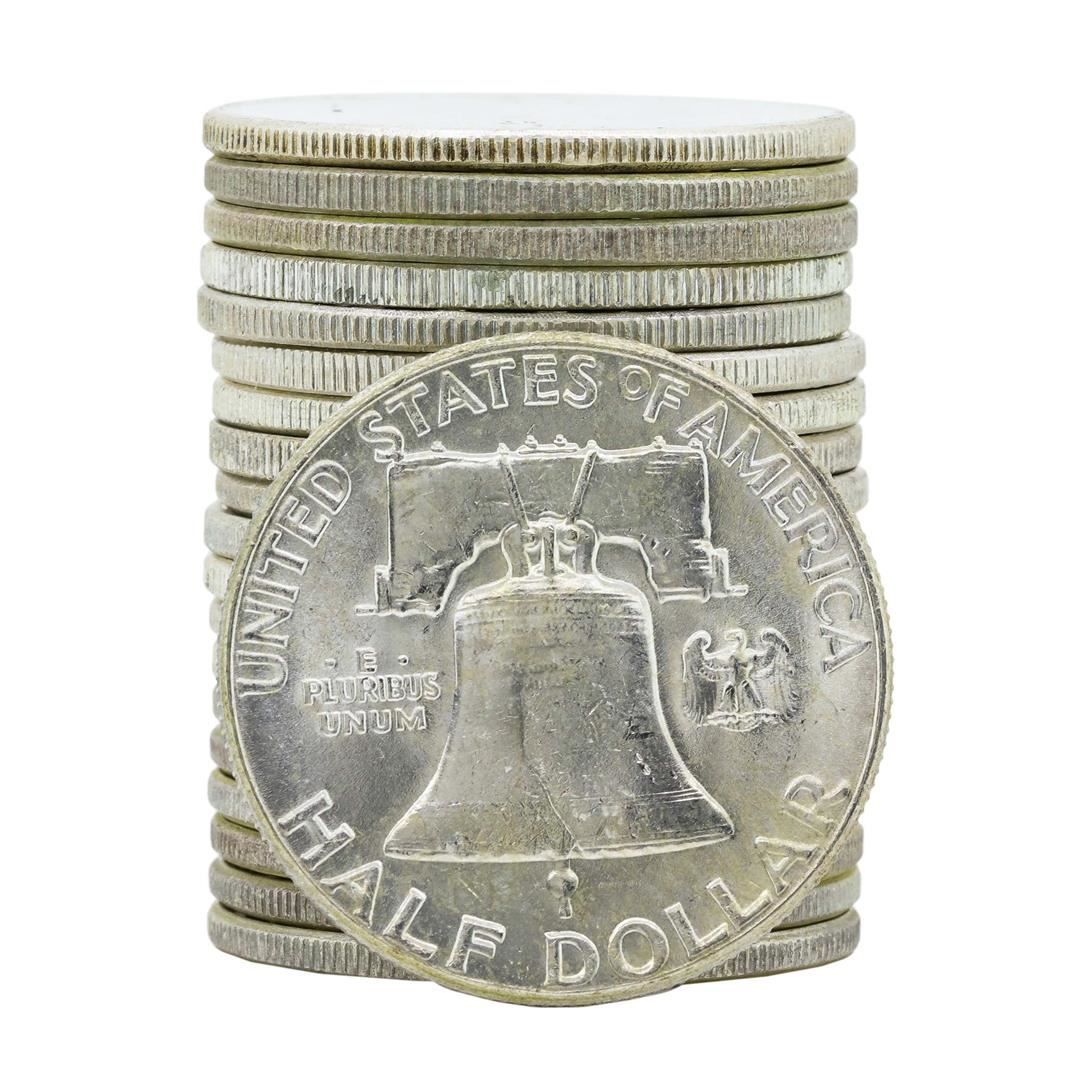 One Roll of (20) 1963 Brilliant Uncirculated Franklin Half Dollar Coins.