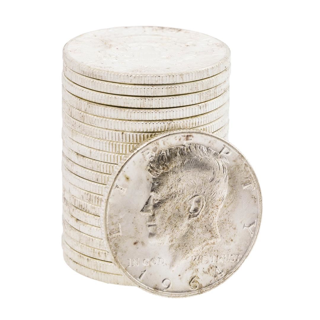 One Roll of (20) 1964-D Brilliant Uncirculated Franklin Half Dollar Coins.