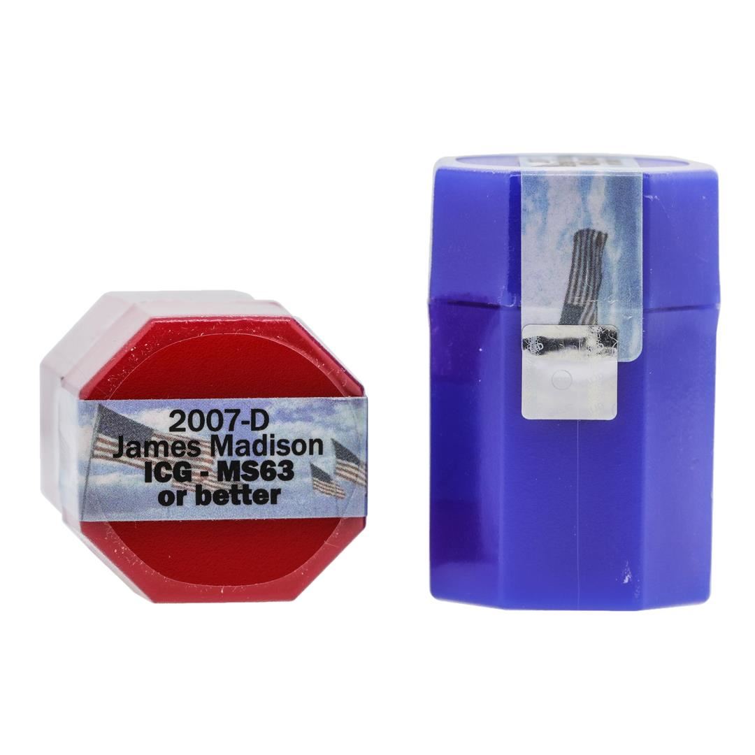 One Rolls of 2007-D & 2007-P $1 James Madison Presidential Coins ICG MS63 or Better. ICG Appraised.