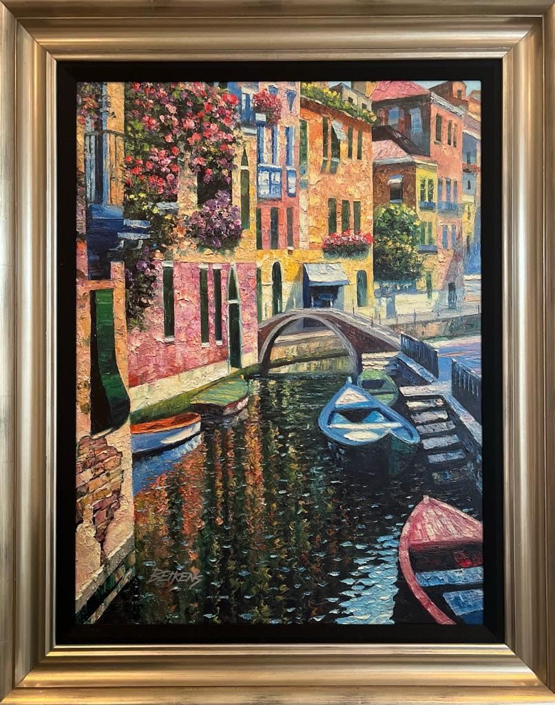 Romantic Canal - Custom Framed by Behrens, Howard. Limited Hand Signed Heavily Embellished Custom Framed. Dimensions: 32 x 24. Excellent Condition.