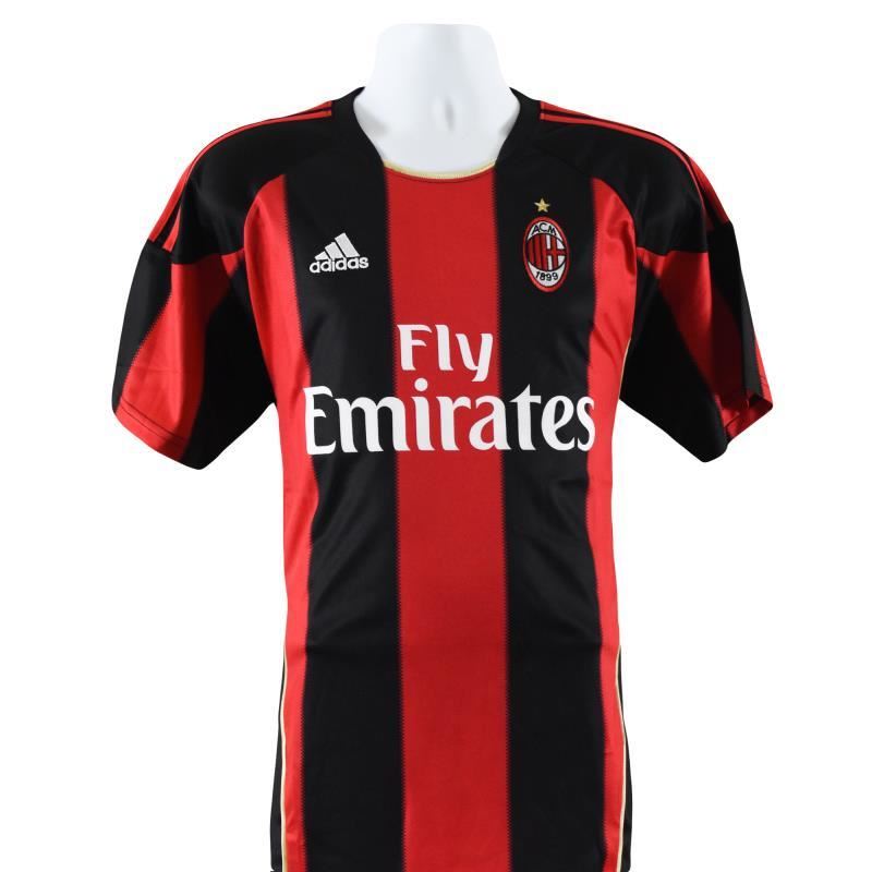 This is a replica AC Milan soccer Jersey autographed by Ronaldinho. This jersey bears a tamper proof sticker with a QR authentication code from Beckett. Measures approx. 30" x 28" (jersey).