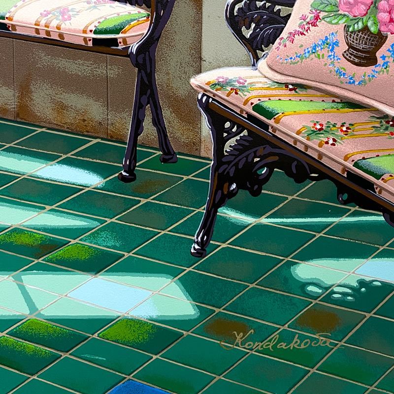 "Room with a View" is a limited edition serigraph on gesso board by Liudmila Kondakova, hand signed by the artist. Includes Certificate of Authenticity from Chalk & Vermilion Fine Arts. Measures approx. 27" x 36" (image).