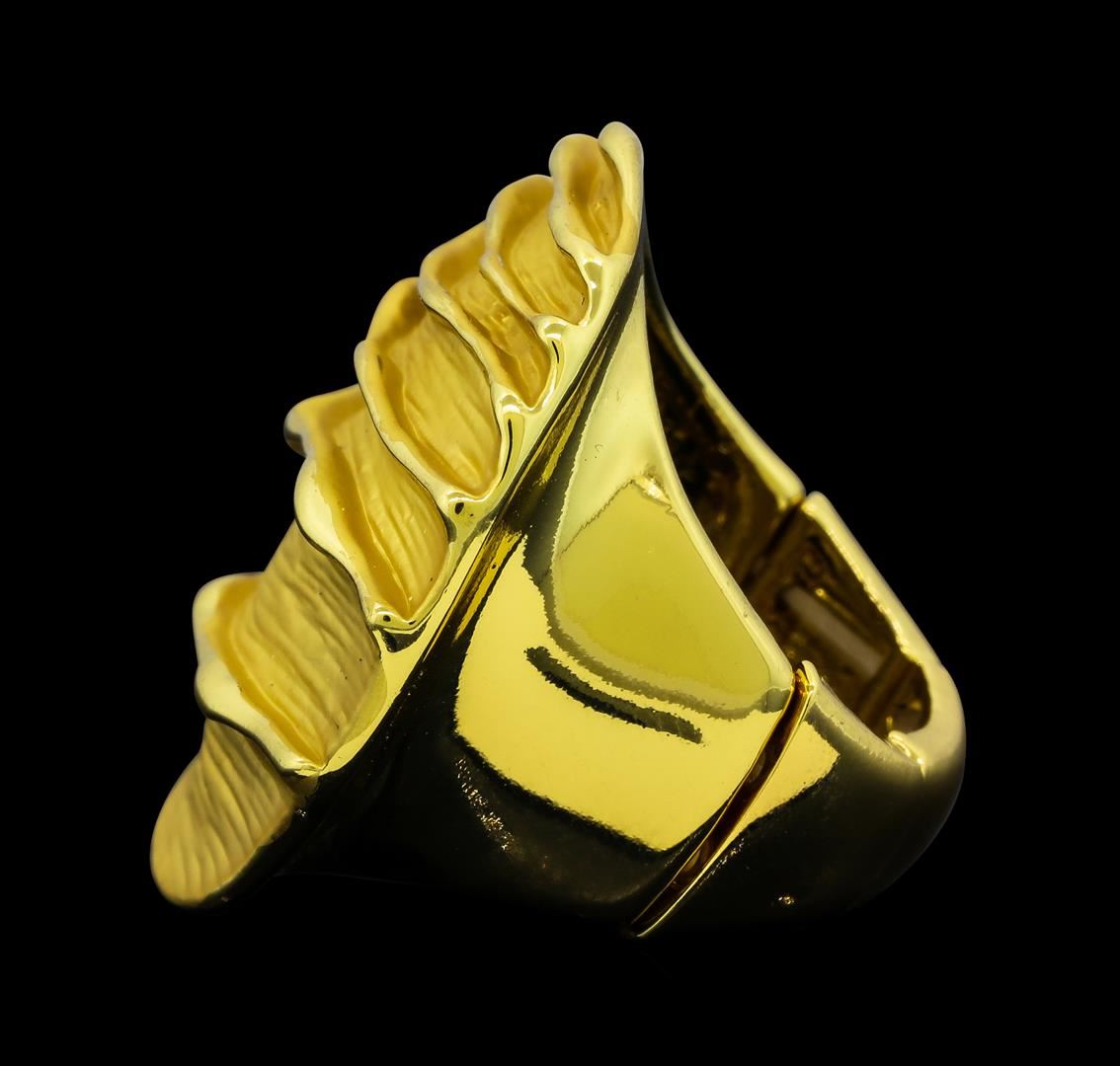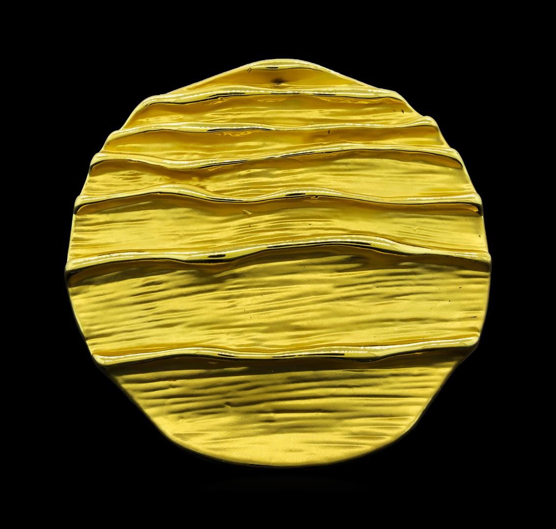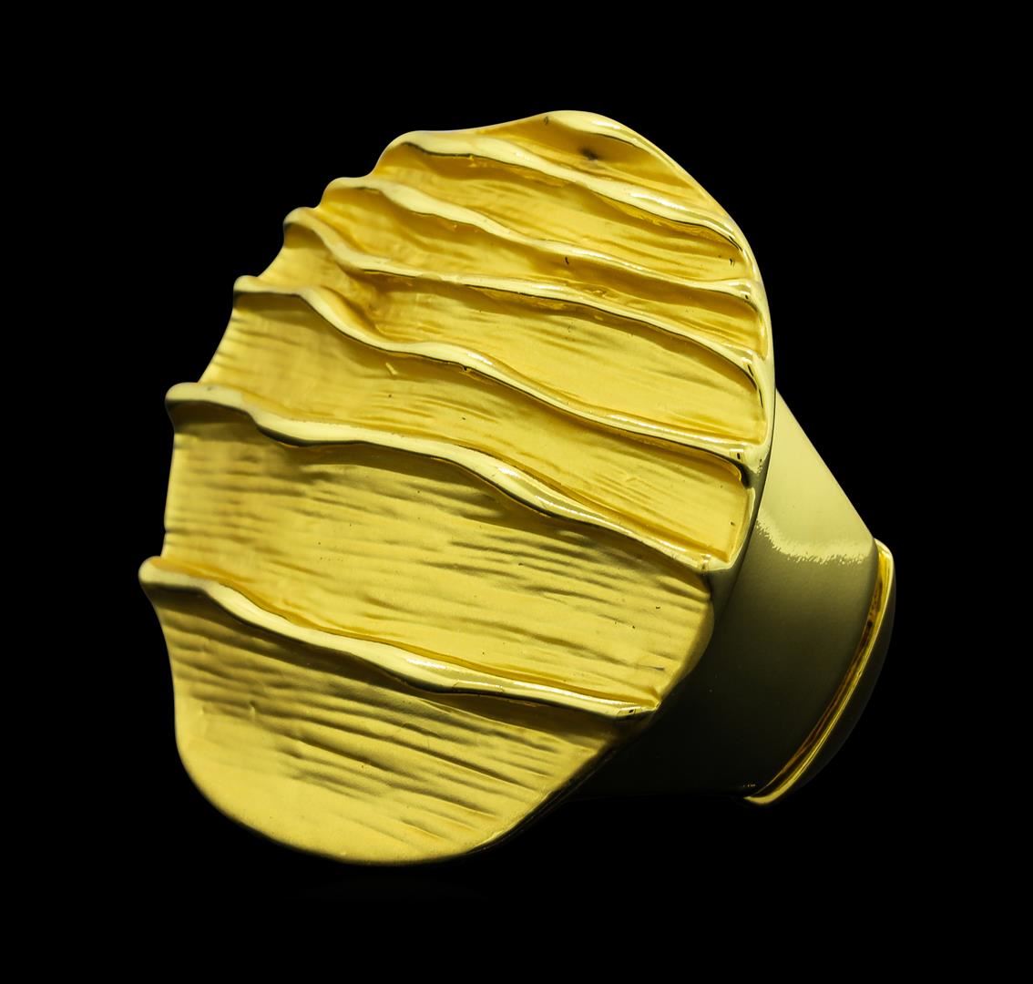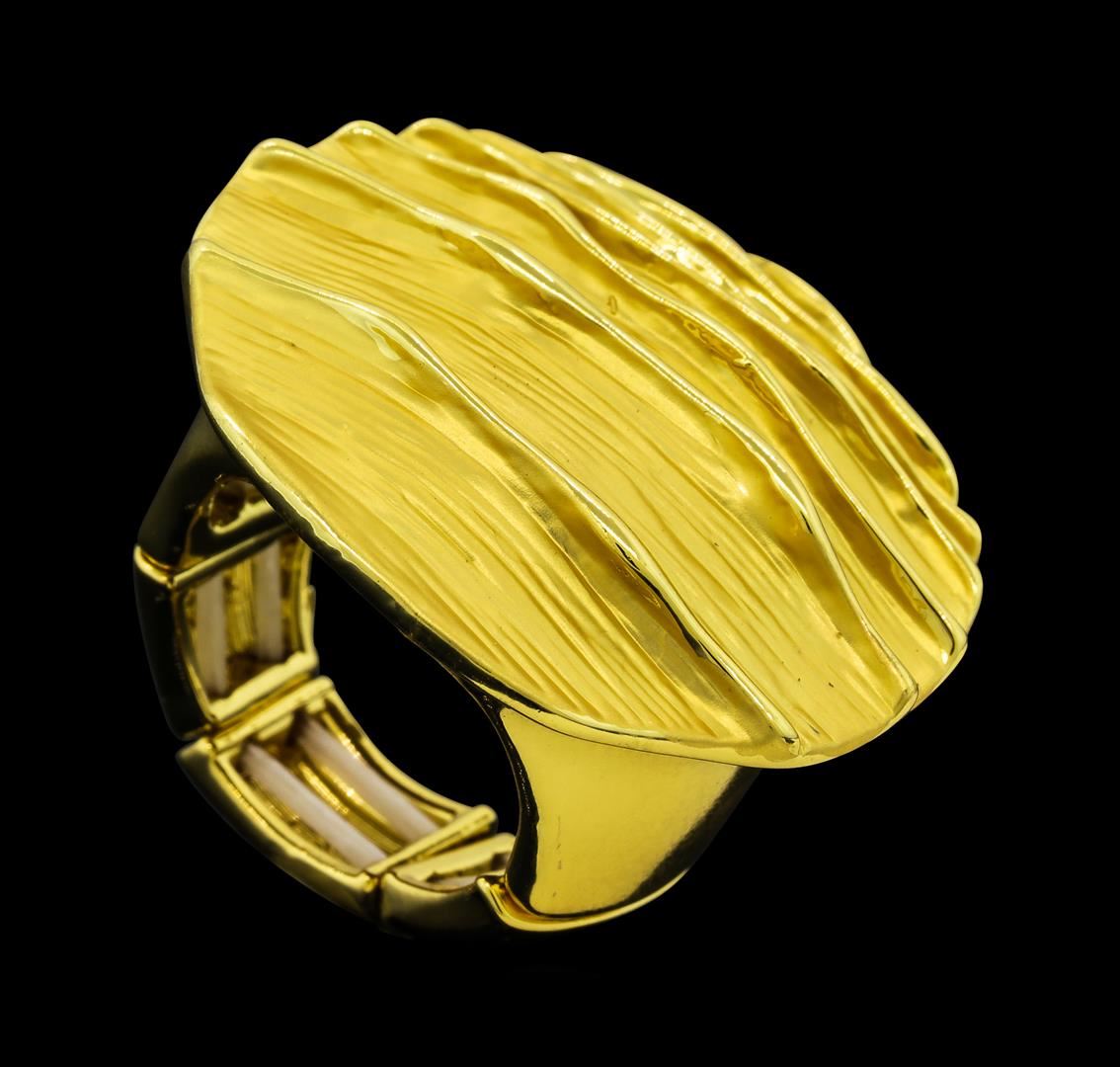High end designer jewelry. Round Medallion Ring - Gold Plated. 18 K Gold Plated Matte Metal. Gold. Elastic.