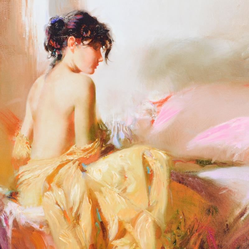 "Royal Beauty" is a limited edition giclee on stretched canvas that has been hand-embellished by Pino himself, AP Numbered and Hand signed by Pino (1939-2010). Includes Certificate of Authenticity. Measures approx. 40" x 30" (image).